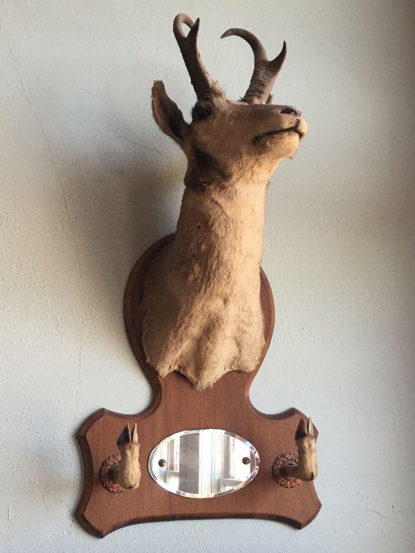Antique Pronghorn Antelope Shoulder Mount  with mirror and hoof hooks
