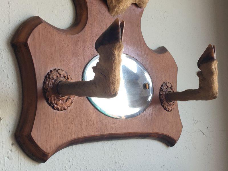 Antique Pronghorn Antelope Shoulder Mount with mirror and hoof hooks