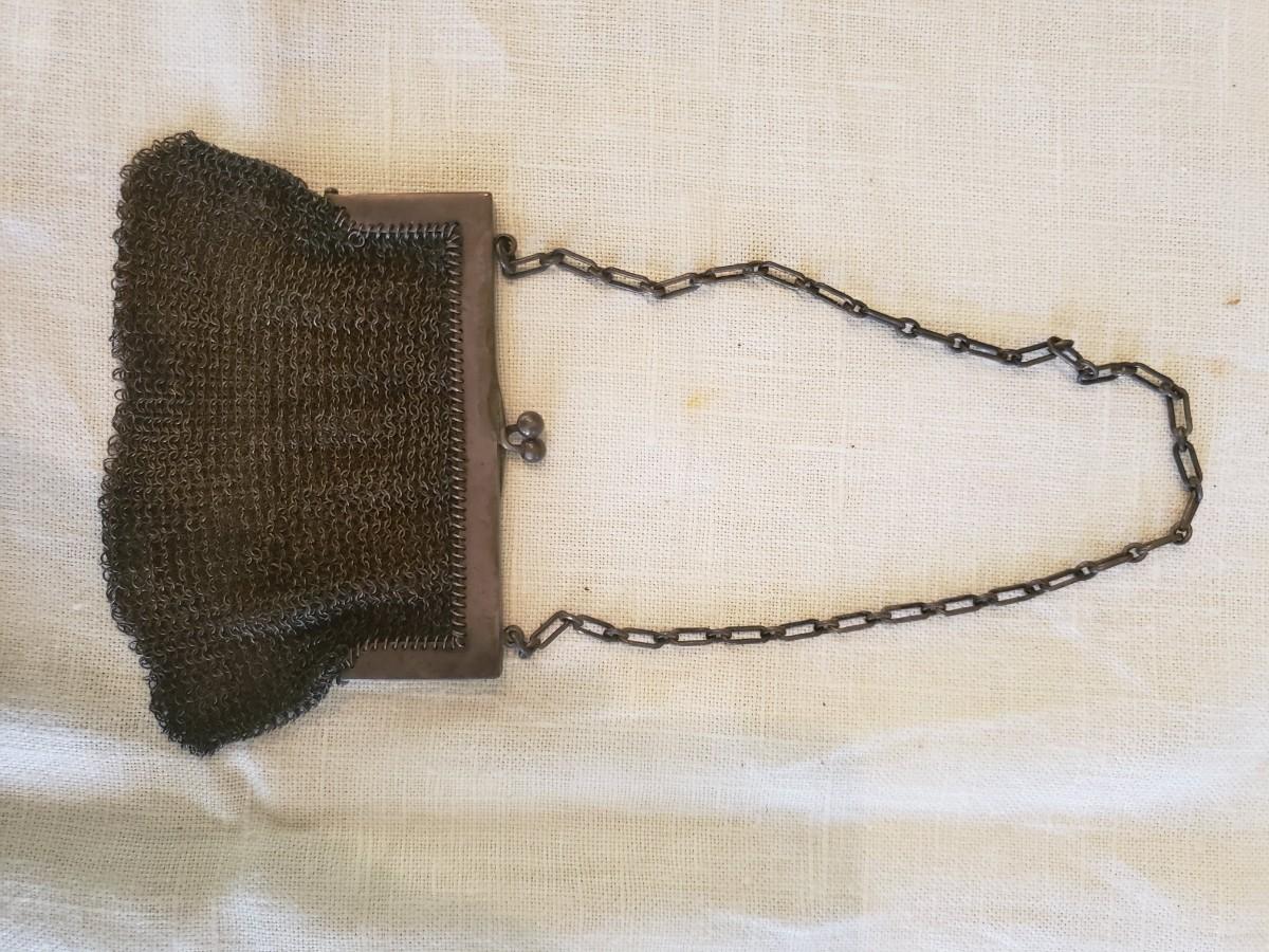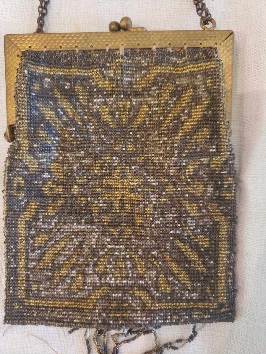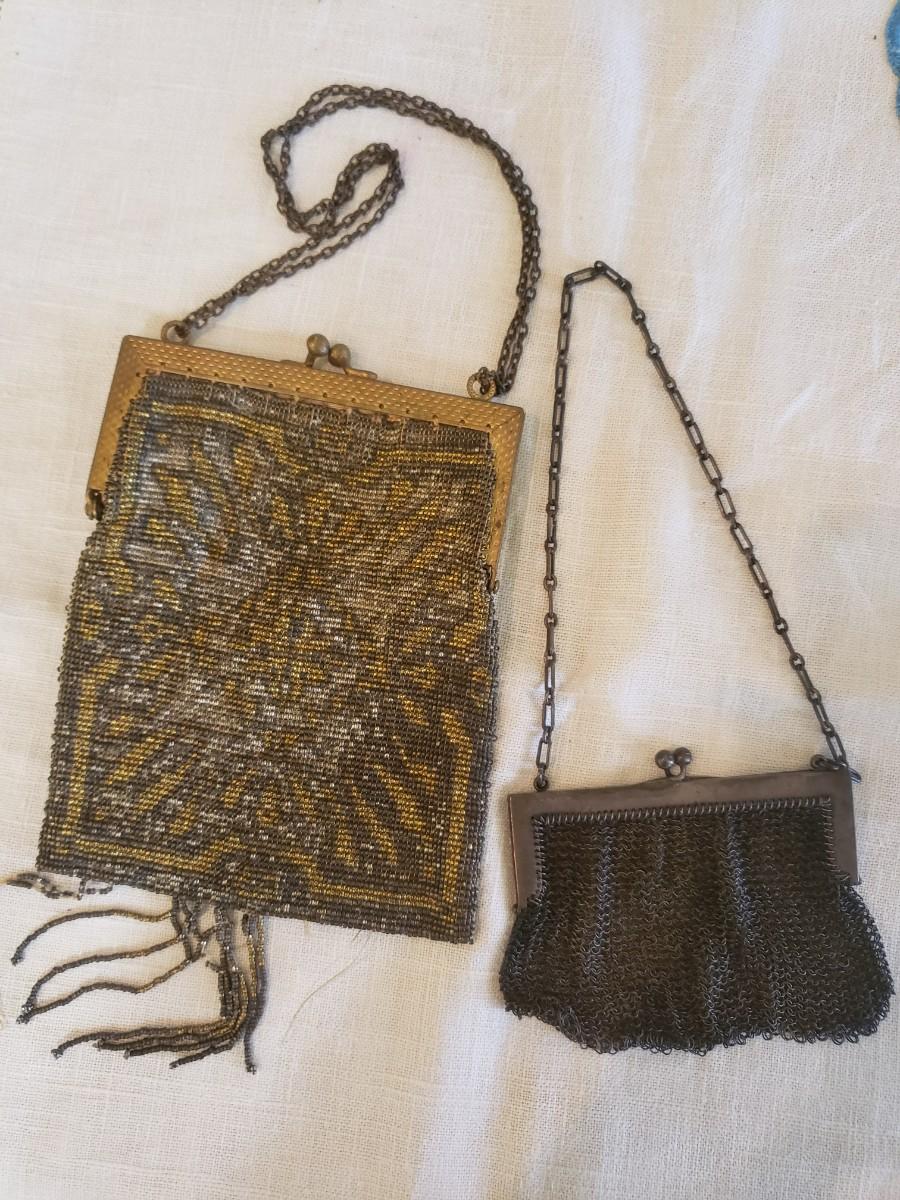 Lot of 2 antique purses. Beaded purse made in France. Sterling chain link purse.