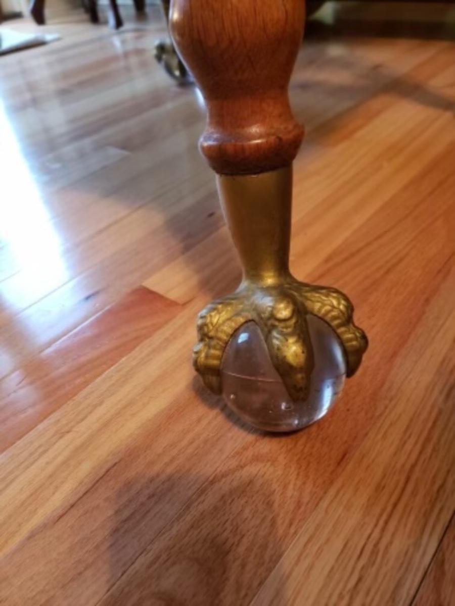 Antique quarter sawn Oak parlor table with large glass ball and claw feet