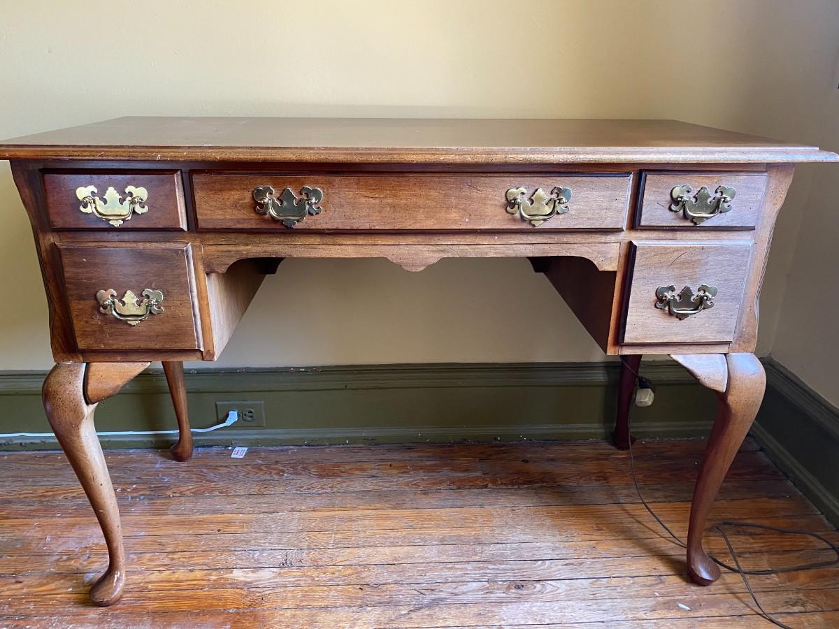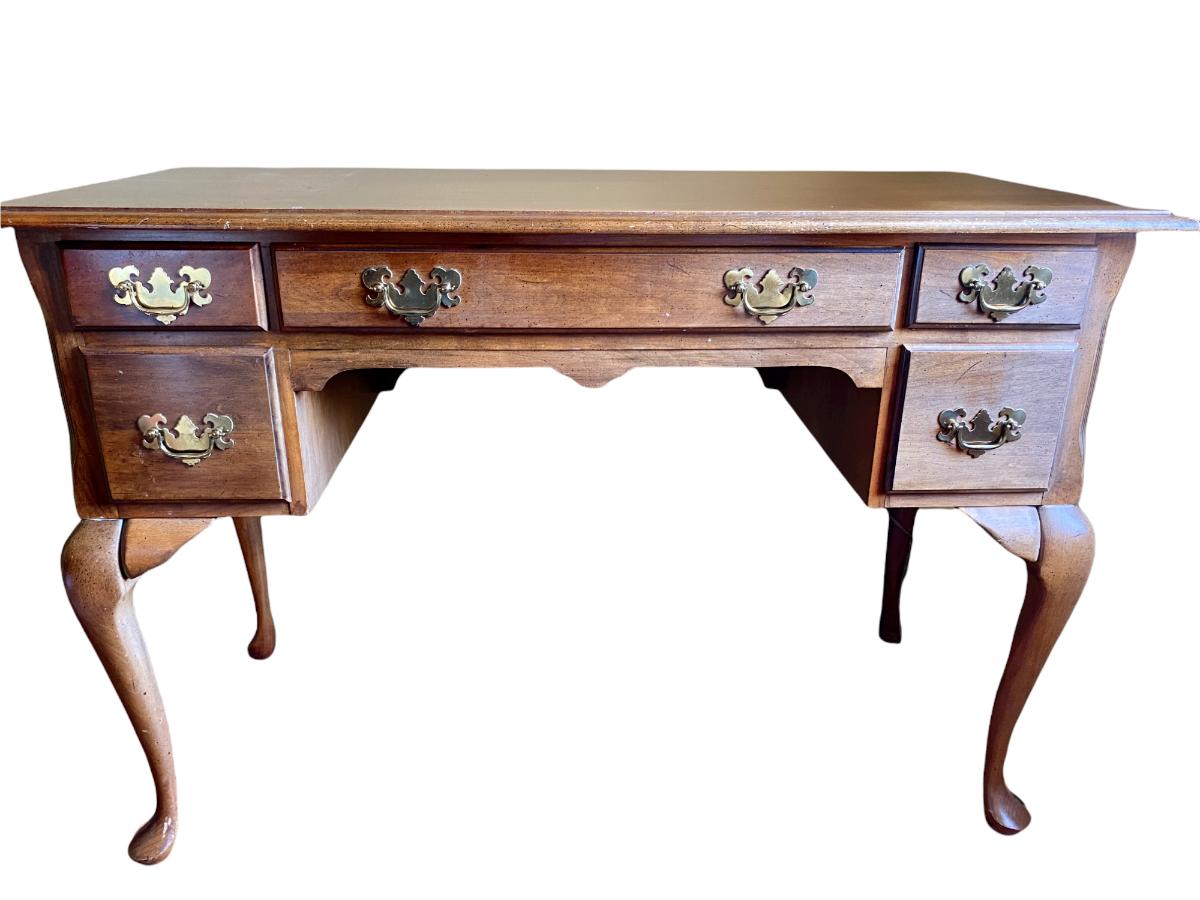 Antique Queen Ann Five Drawer Writing Desk With Brass Handles - JB11175