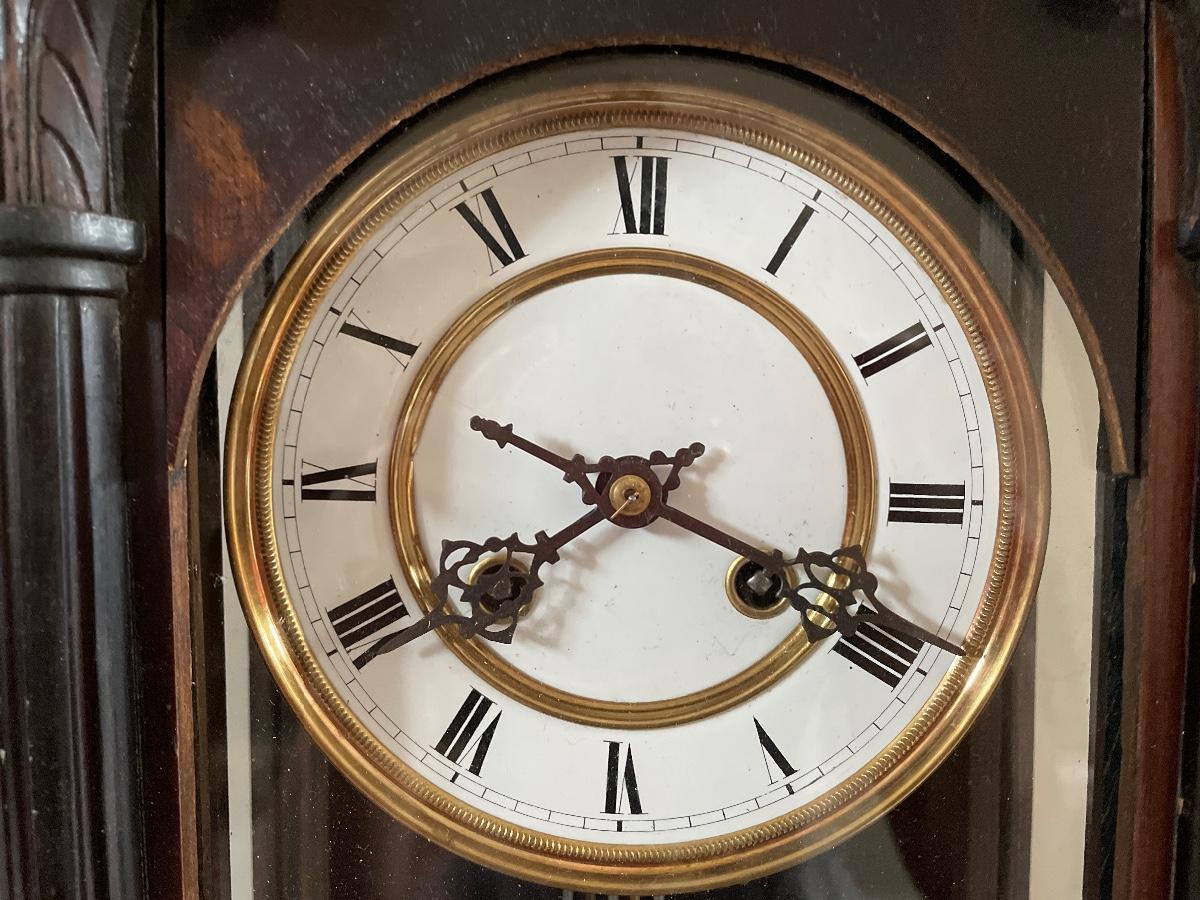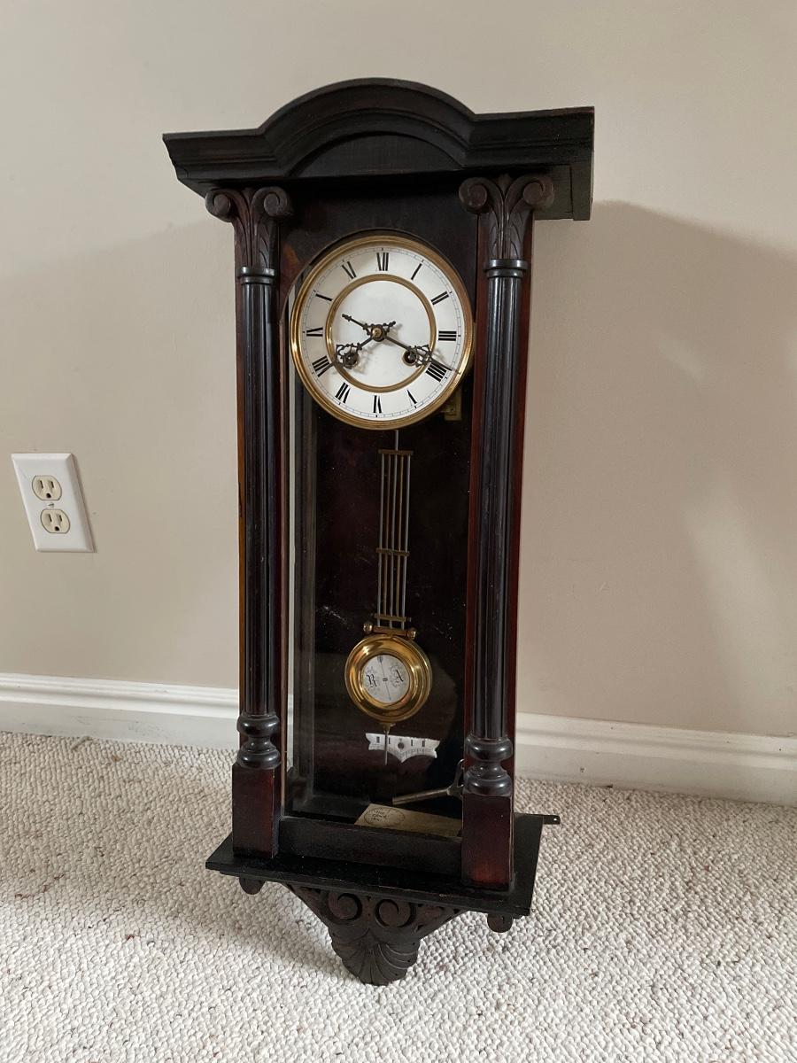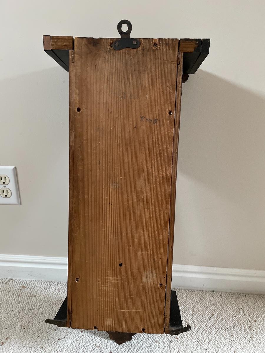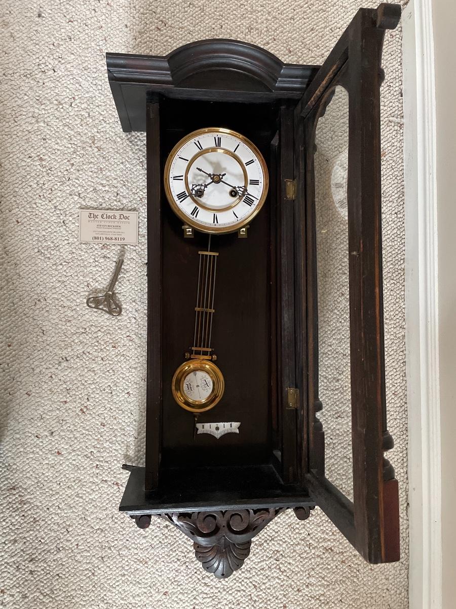 #32 Antique R & A Wind Up Carved Wooden Wall Clock