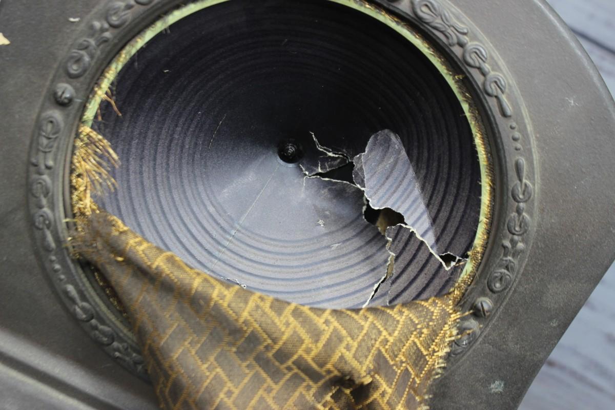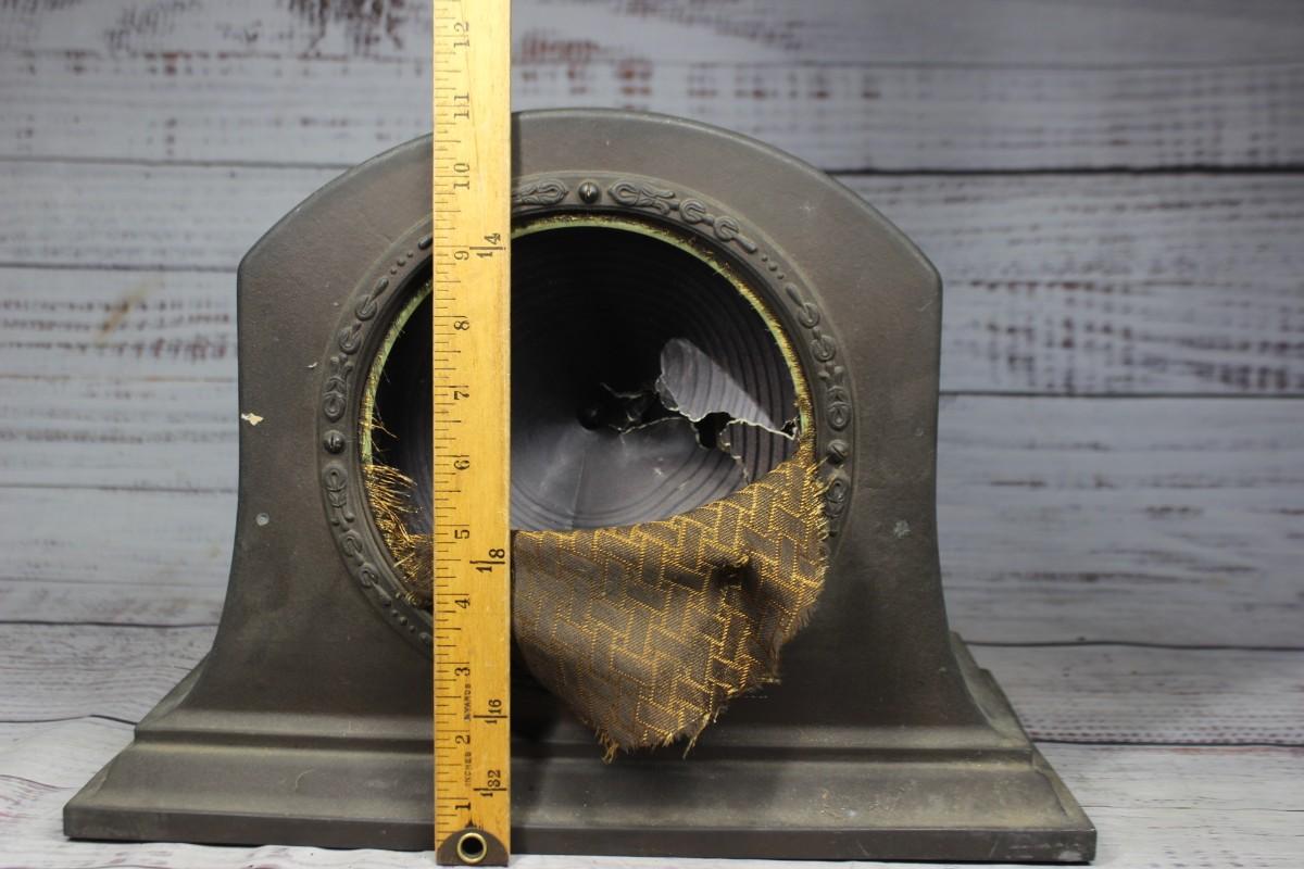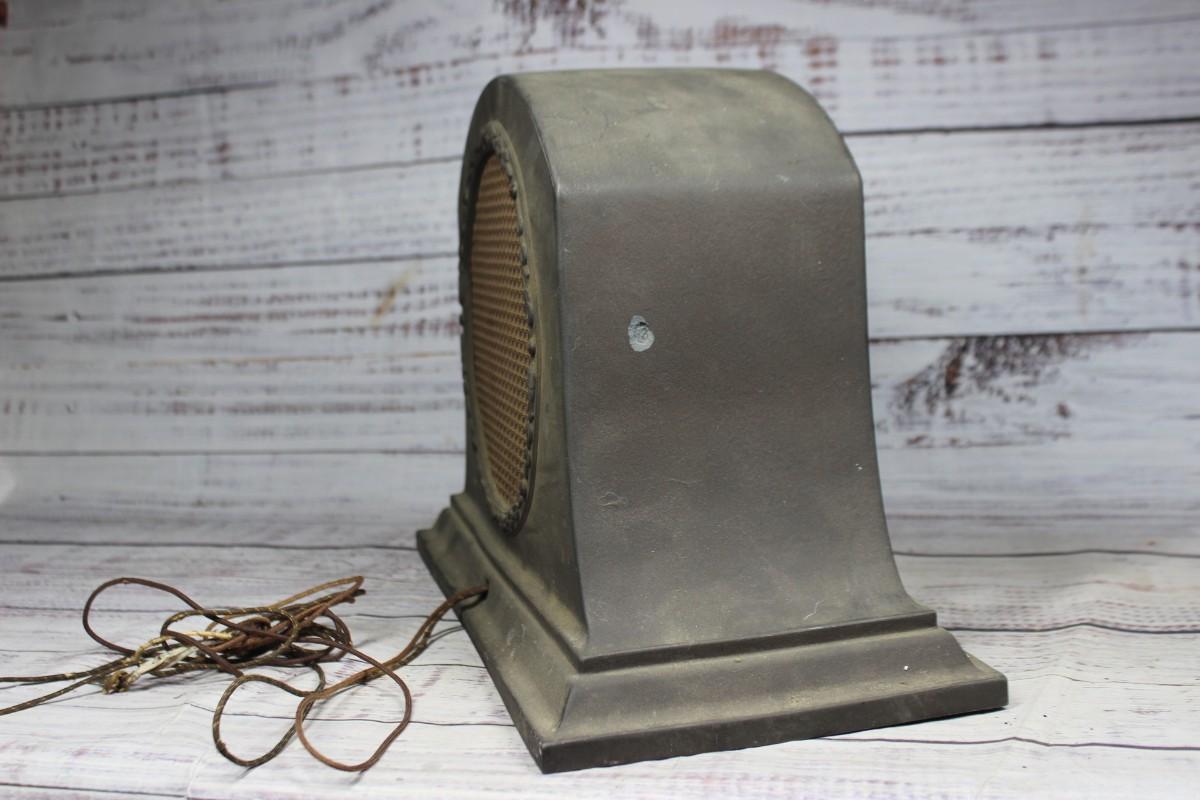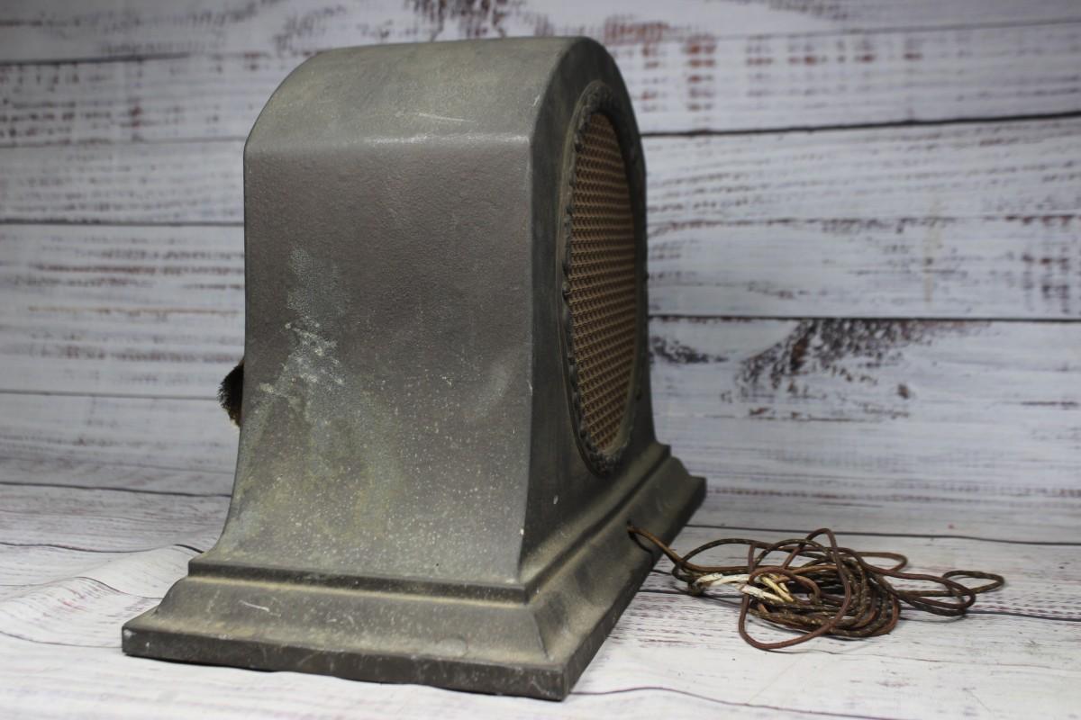 Antique Radiola Model 100-A Art Deco Loudspeaker, the front of the speaker is ripped and there is some overall wear to the metal body. There is no other significant damage to the speaker and is in overall fair condition for its age. Has not been tested, check pictures for more details and for sizing.