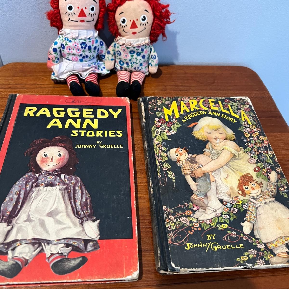 Antique Raggedy Ann Lot - 2 Books, 2 Dolls