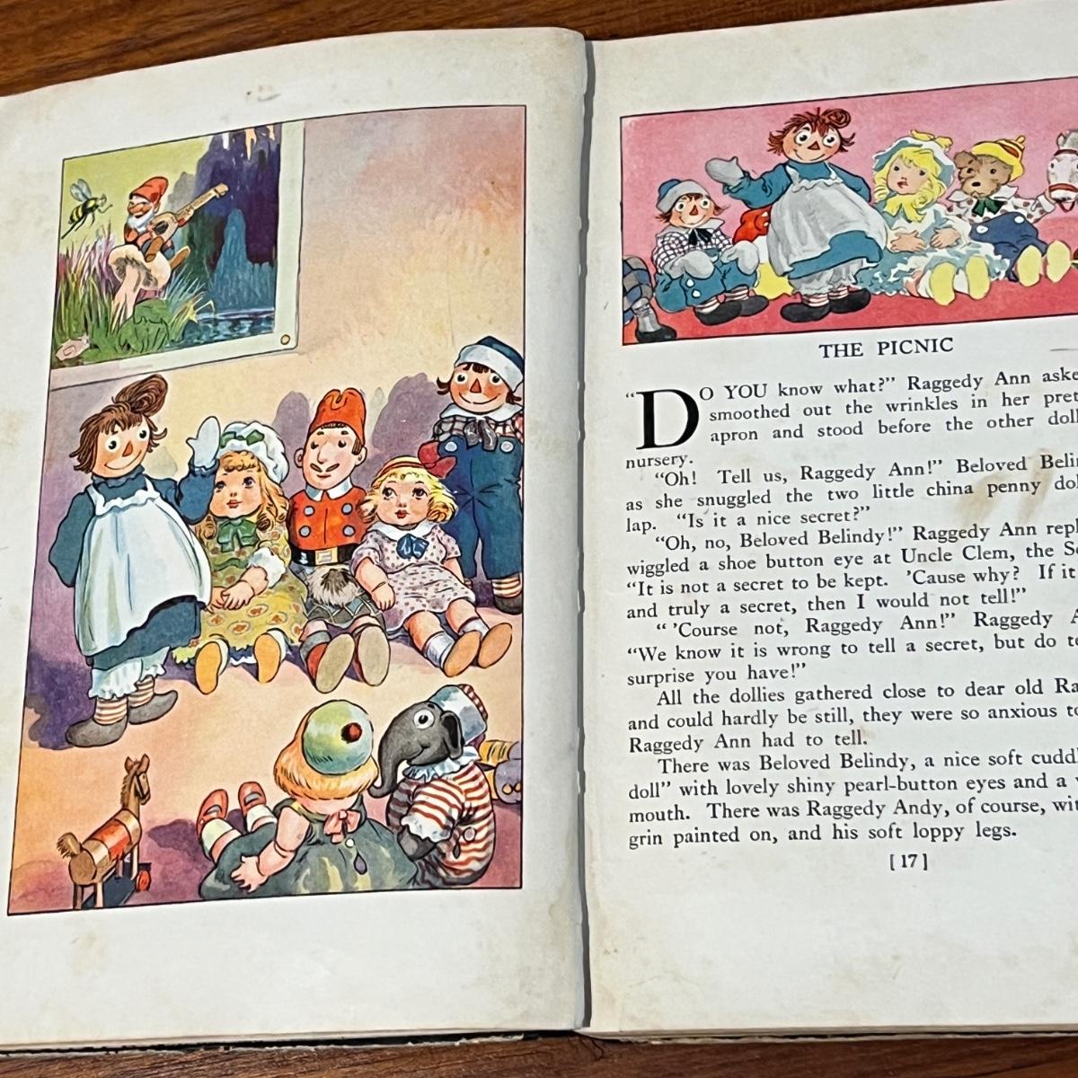 2 books written and illustrated by Johnny Gruelle. 1 Original Copyright 1917 and 1 Original Copyright 1929. Plus 2 vintage Knickerbocker dolls.
