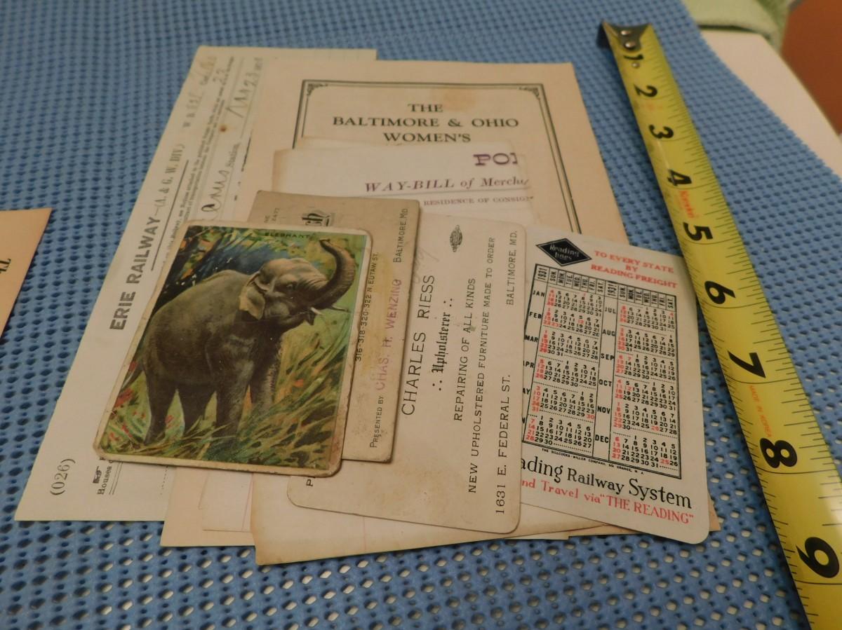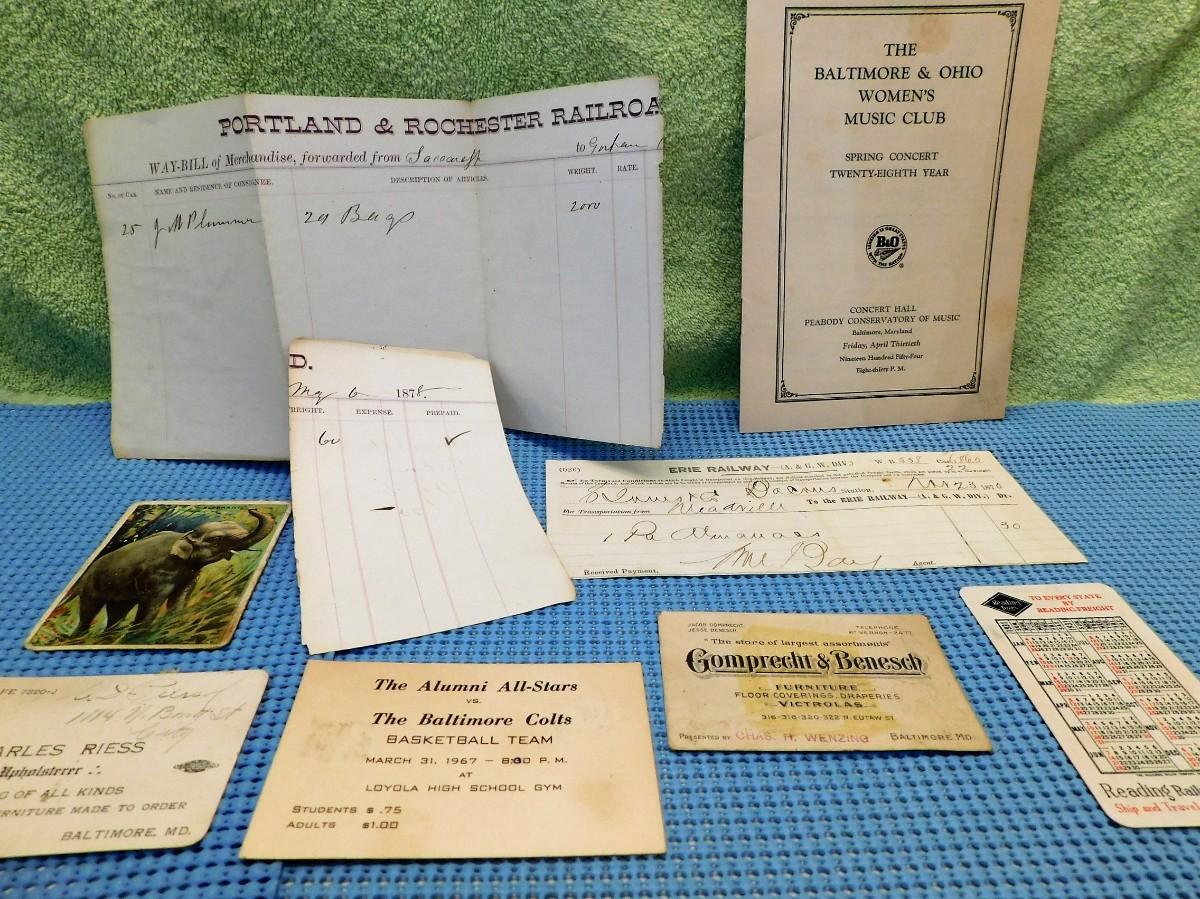 ANTIQUE RAILROAD PAPER LOT + Baltimore Colts - Tobacco Card - EPHEMERA ATTIC FINDS