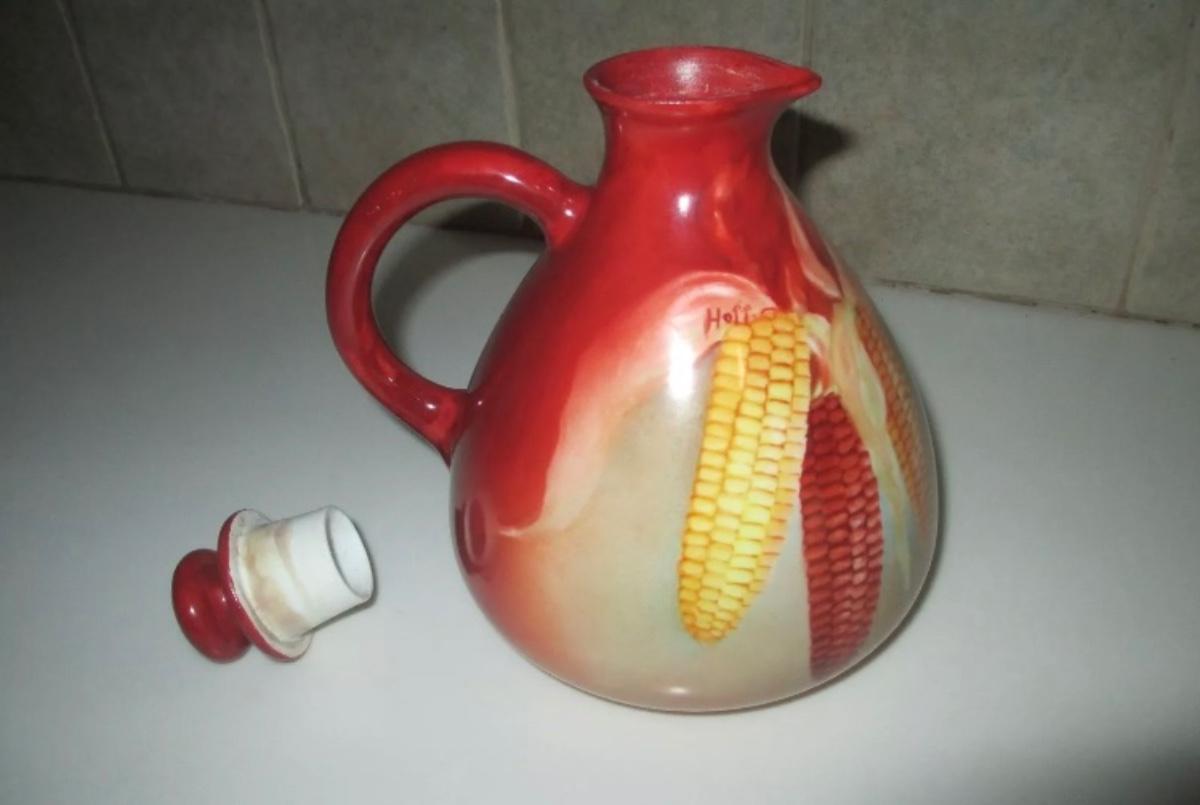 Antique rare Bavarian signed Indian corn cider-pitcher