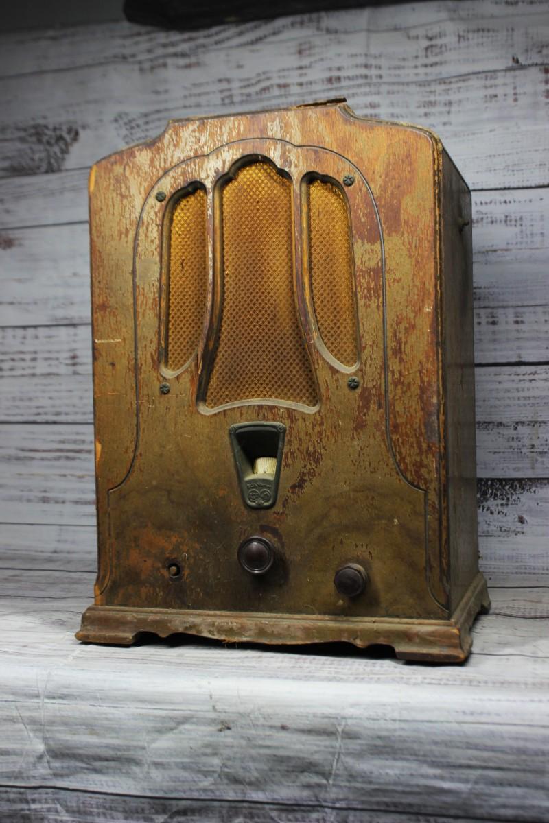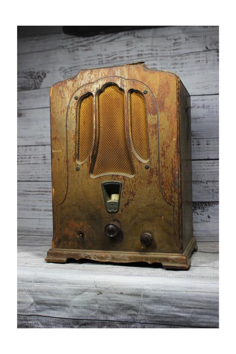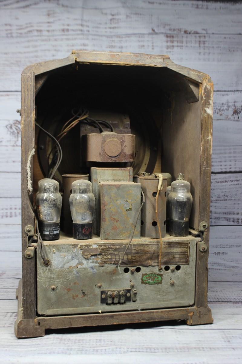 Antique RCA Victor Radiola Superette R-7 Tombstone Radio, there is some wear to the radio and is in overall fair condition for its age. The power cord seems to be ripped from the back of the radio and has not been tested, check pictures for more details and for sizing.