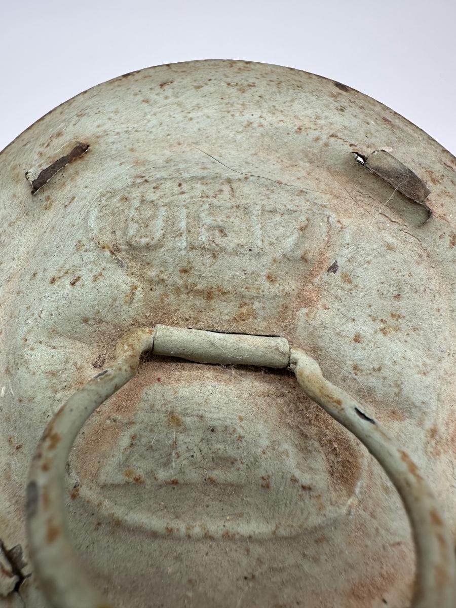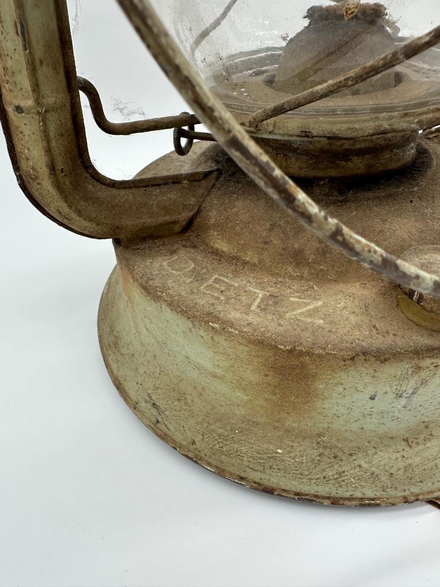 Antique kerosene lantern by R.E. Dietz Company, marked “NEW YORK” on the base. Classic Dietz construction with original clear glass globe, wire guard, and bail handle. Heavy original patina with surface rust throughout, consistent with age and use. Globe appears intact. Untested and sold as found—excellent primitive décor piece or restoration candidate.