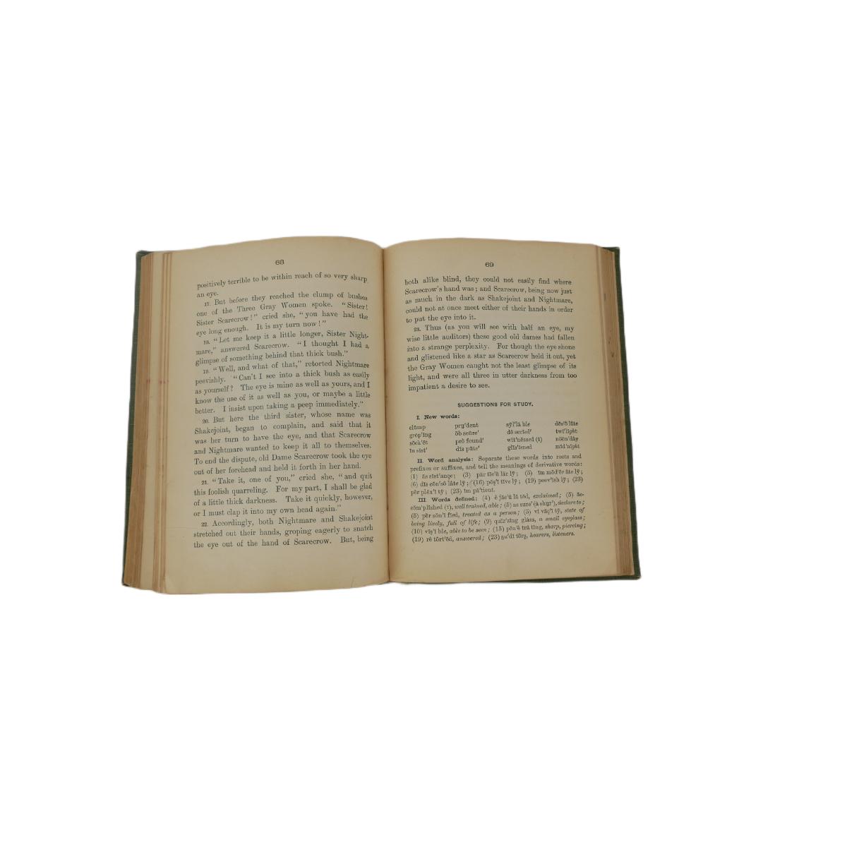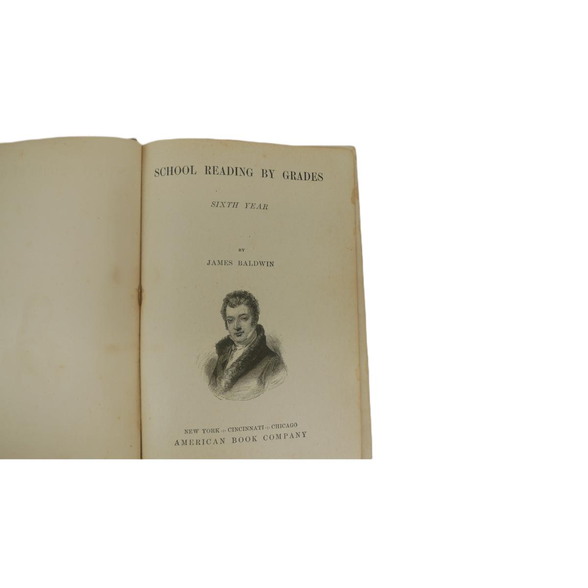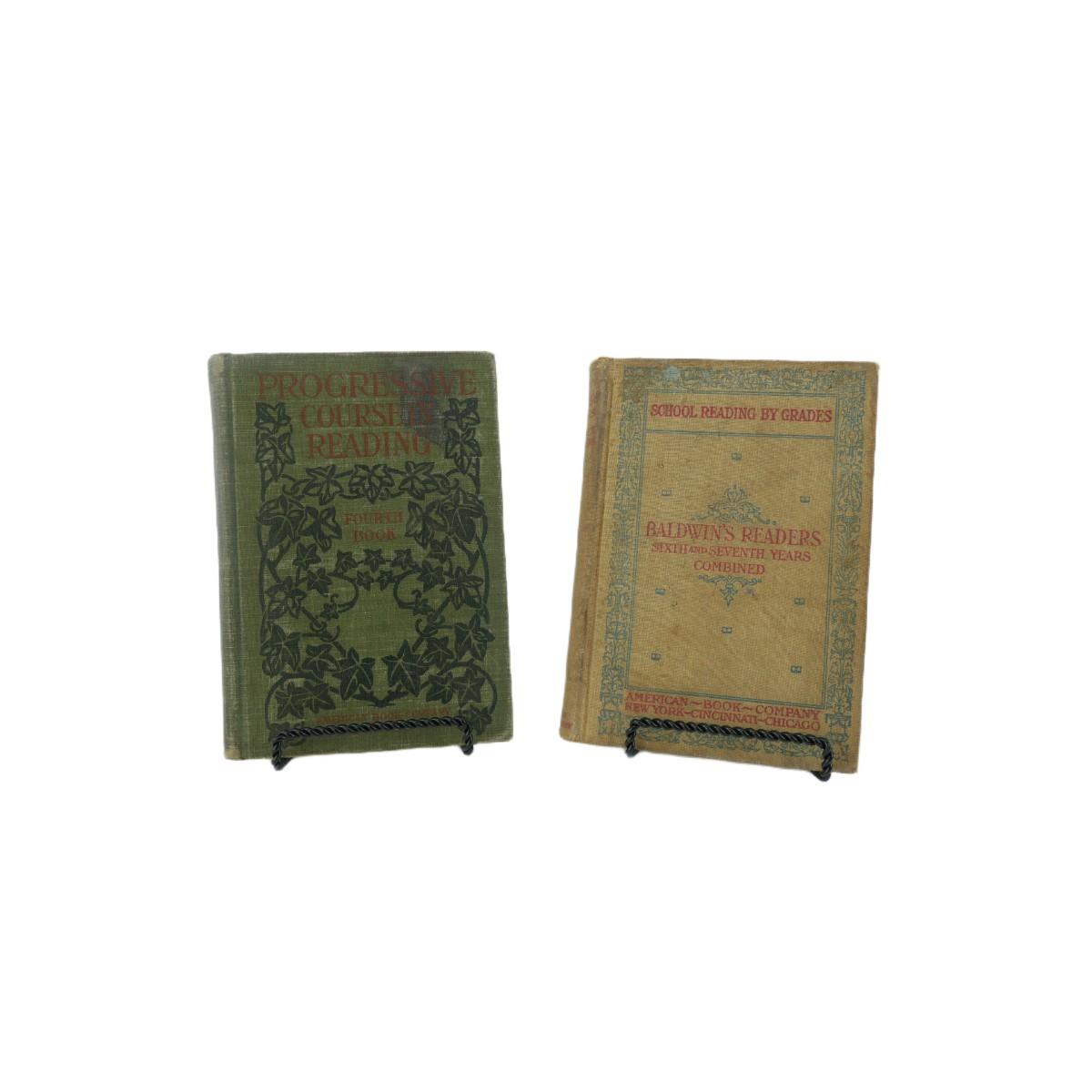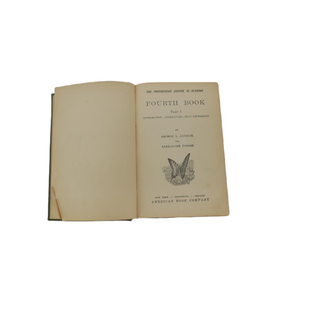 Antique book titled Progressive Course in Reading - Fourth Book by George Aldrich and Alexander Forbes. Copyright, 1900 Butler, Sheldon & Company. Very good condition. Measures 5.5" x 7.5" x 1". Antique book titled School Reading by Grades: Sixth and Seventh Years Combined by James Baldwin. Copyright, 1897 American Book Company. Good condition. Measures 5.5" x 7.5" x 1". Lot weighs 2 lb 10 oz. (M11)