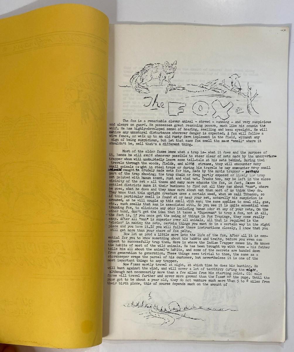 You get one vintage Real Indian Fox Trapping Methods softcover published by Bill Hoffman in Russell, Manitoba. It is illustrated by Bill Hoffman and is in English. It measures approximately 14 inches long by 8.5 inches wide. The book is in fair condition. This book still has its original staples. It appears to be missing the back cover, but there are no missing pages. A price sticker if affixed to the front cover, which has some wear. The pages tanned some over the years, but they are free of writing and in good shape. Please see all pictures. Thank you for looking. As a reminder, if this is a lot, we do not break up lots. Also, all items are prepacked, so each item is sent individually. Any item that qualifies for media mail and weighs over one pound will be shipped via media mail. Otherwise, the item will be shipped USPS ground advantage, or UPS ground. Shipping for this item is $8.00. Items ship within two days after payment is received. Item SKU is .