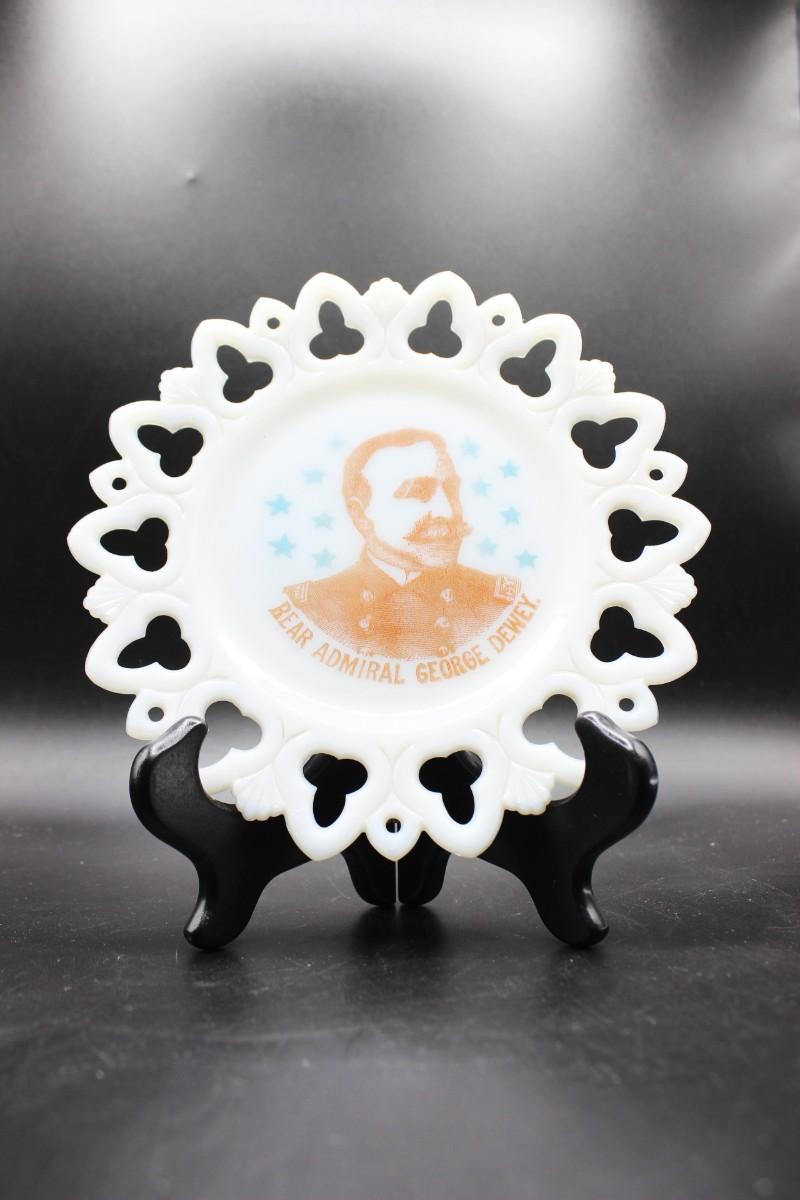 Antique Rear Admiral George Dewy Milk Glass Collector Plate