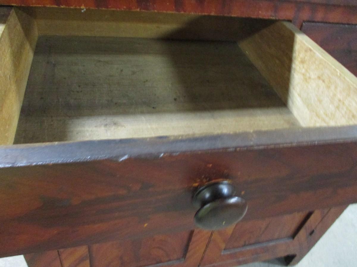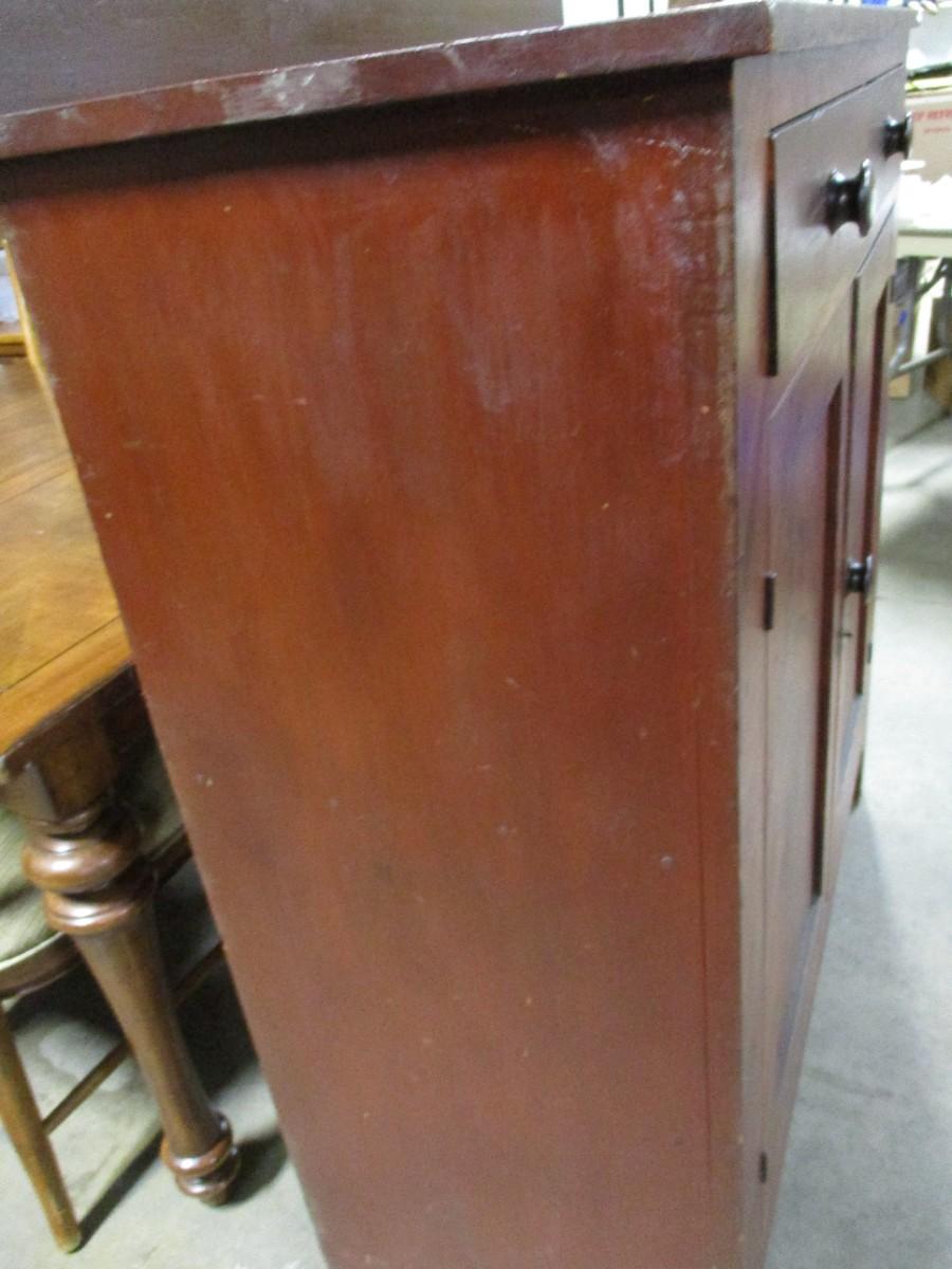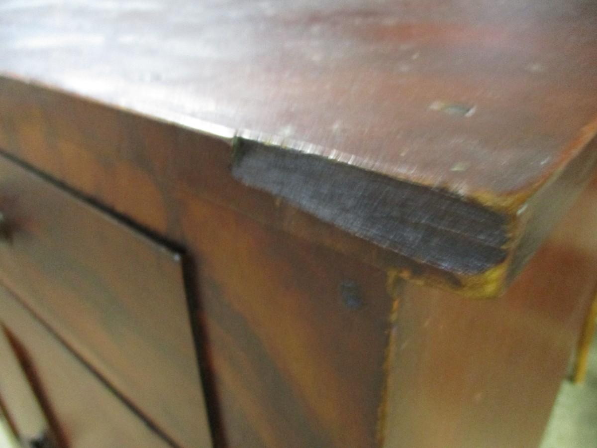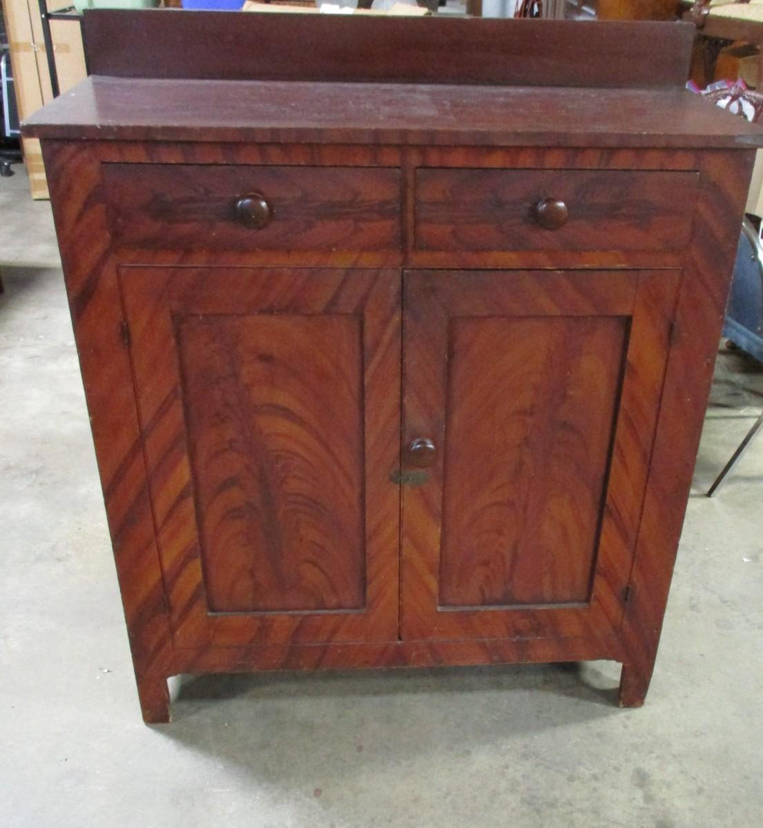 19th Century 1850's Wide Board Square Nail Pennsylvania Poplar Feather Grain Painted Mahogany Finish Folk Art Cupboard 45" x 19 1/2" x 52"