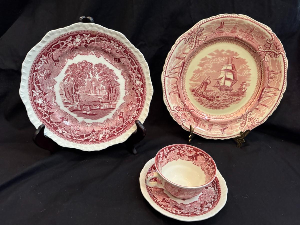 Antique Red and White Transferware Mason's England Ironstone 4 Piece Lot