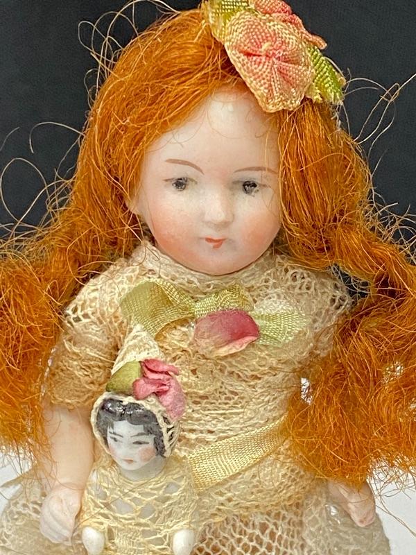 Antique Red Head Ginger Dollhouse Doll with Dolly 3.5" YD#020-1220-00752