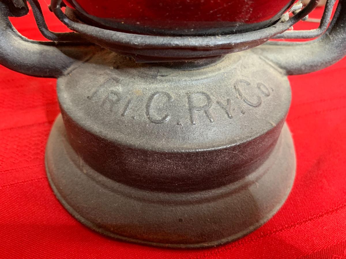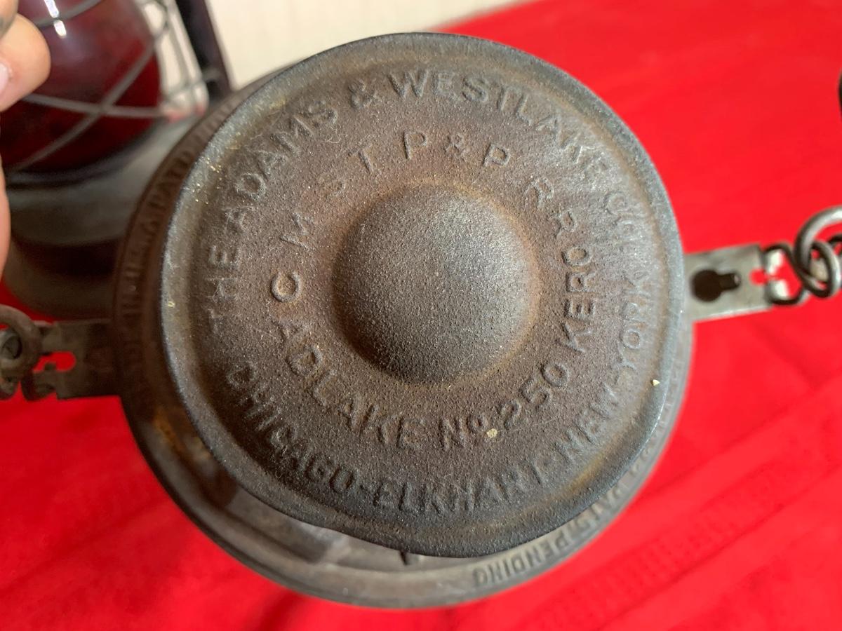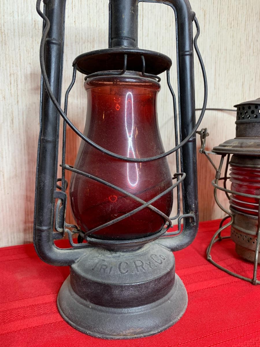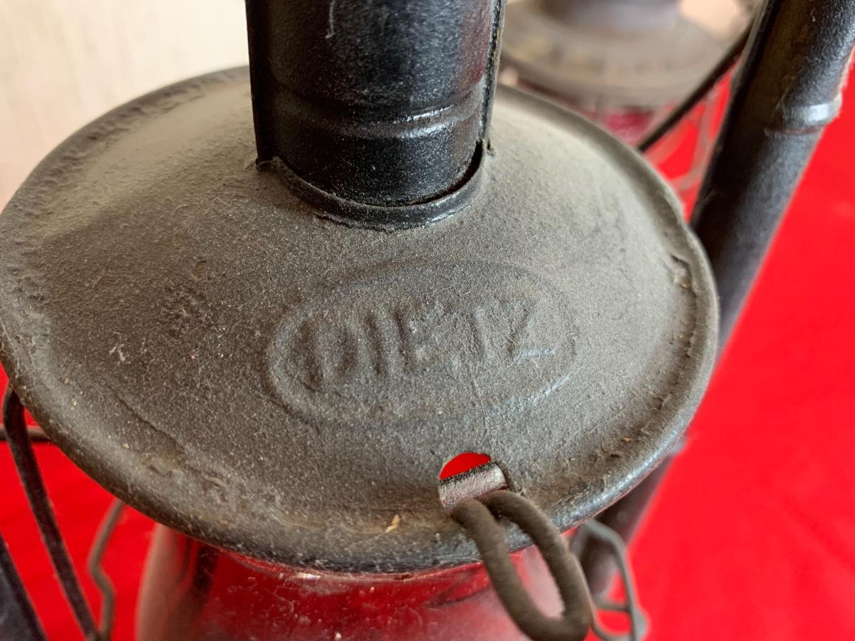 Two antique red lanterns, one being Dietz (larger one) and the smaller one is from 1911 from The Adams and Westlake Company