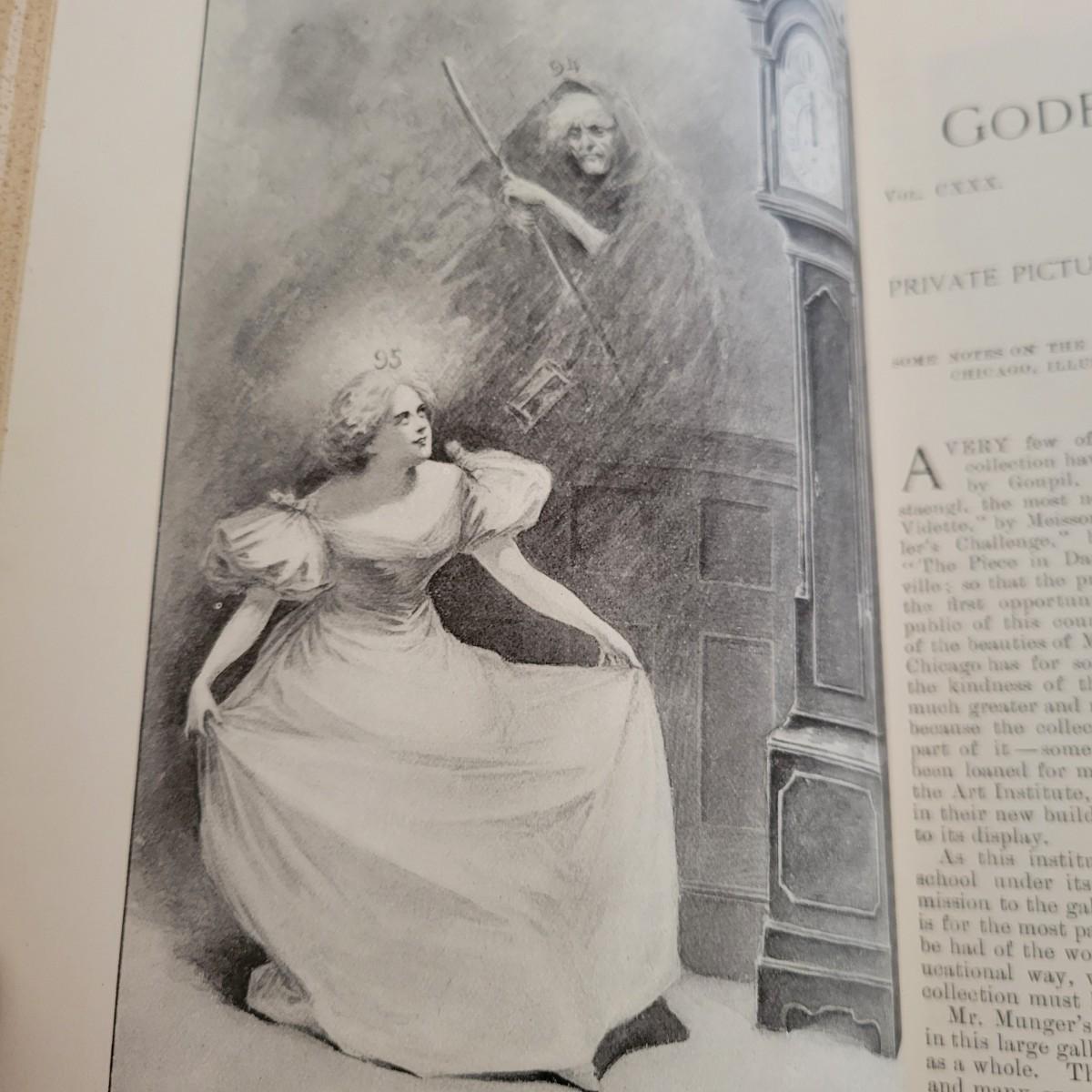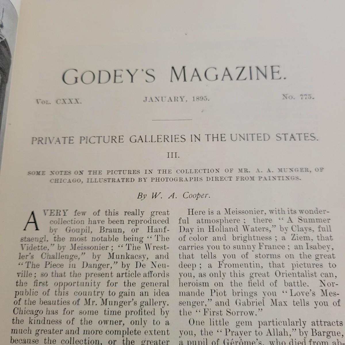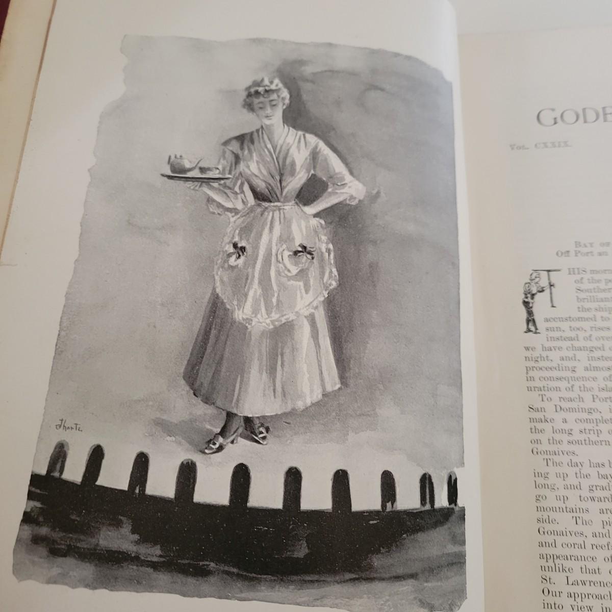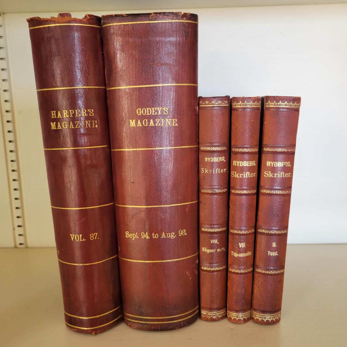An assortment of five red, leather-bound books in good condition with some minor wear and tear. This assortment includes groupings of Harper's Magazine published in 1893 and Godey's Magazine from Sept 1894 to 1898. Also includes a series of three books that appear to written in Dutch and published in 1897 to 1906. Shipping available