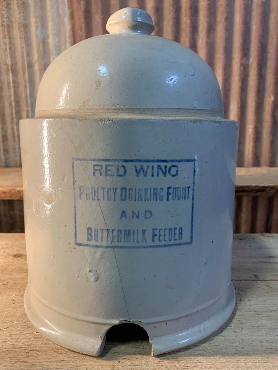 Antique Red Wing Poultry Drinking Fountain and Buttermilk Feeder
