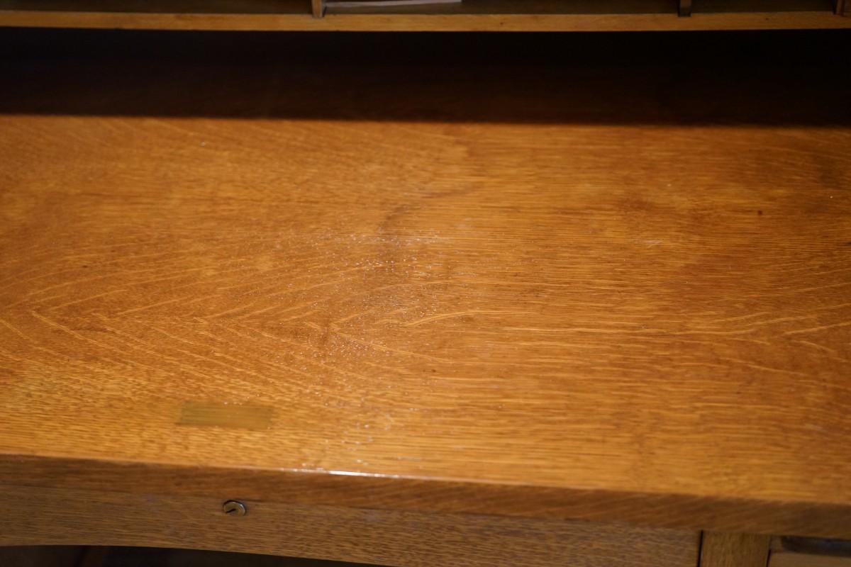 The desk has been restored with a good natural finish, The drawers are clean and open and close easy.