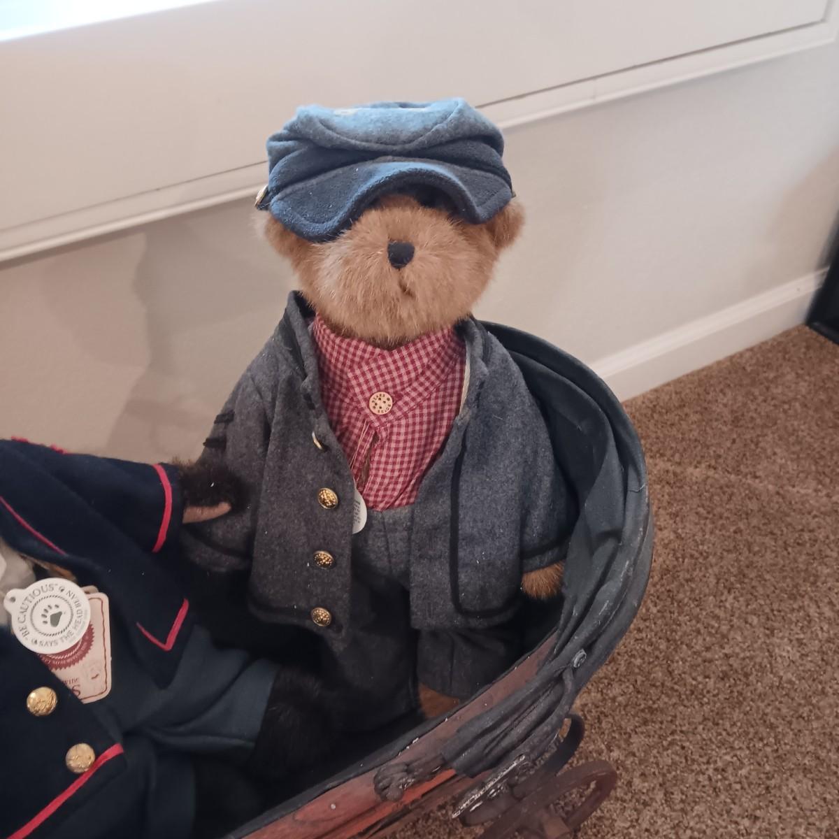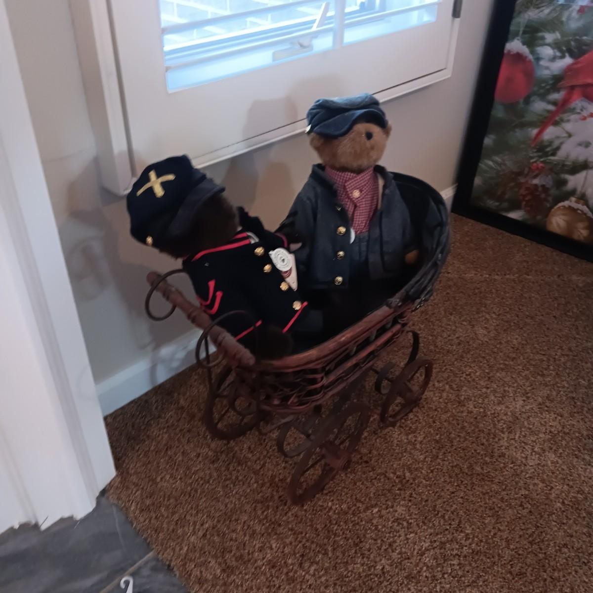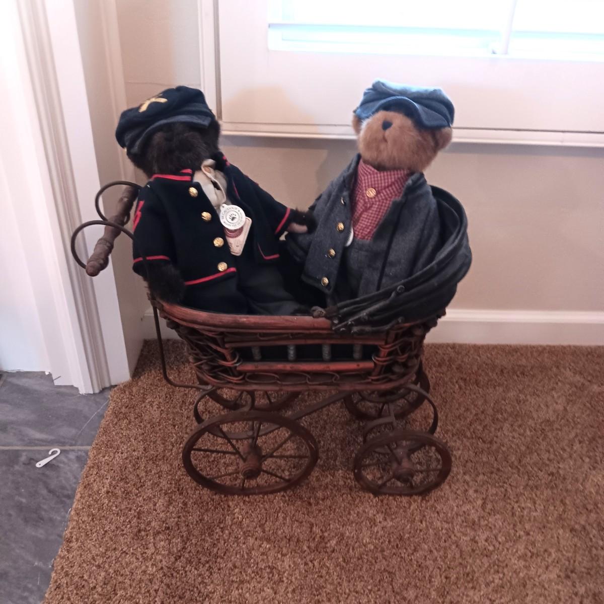ANTIQUE REPLICA STROLLER WITH 2 BOYDS BEARS