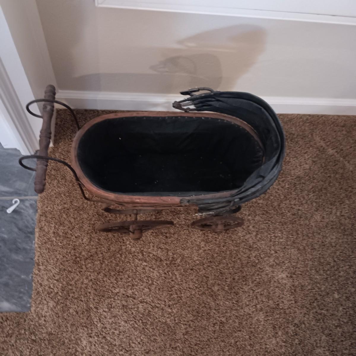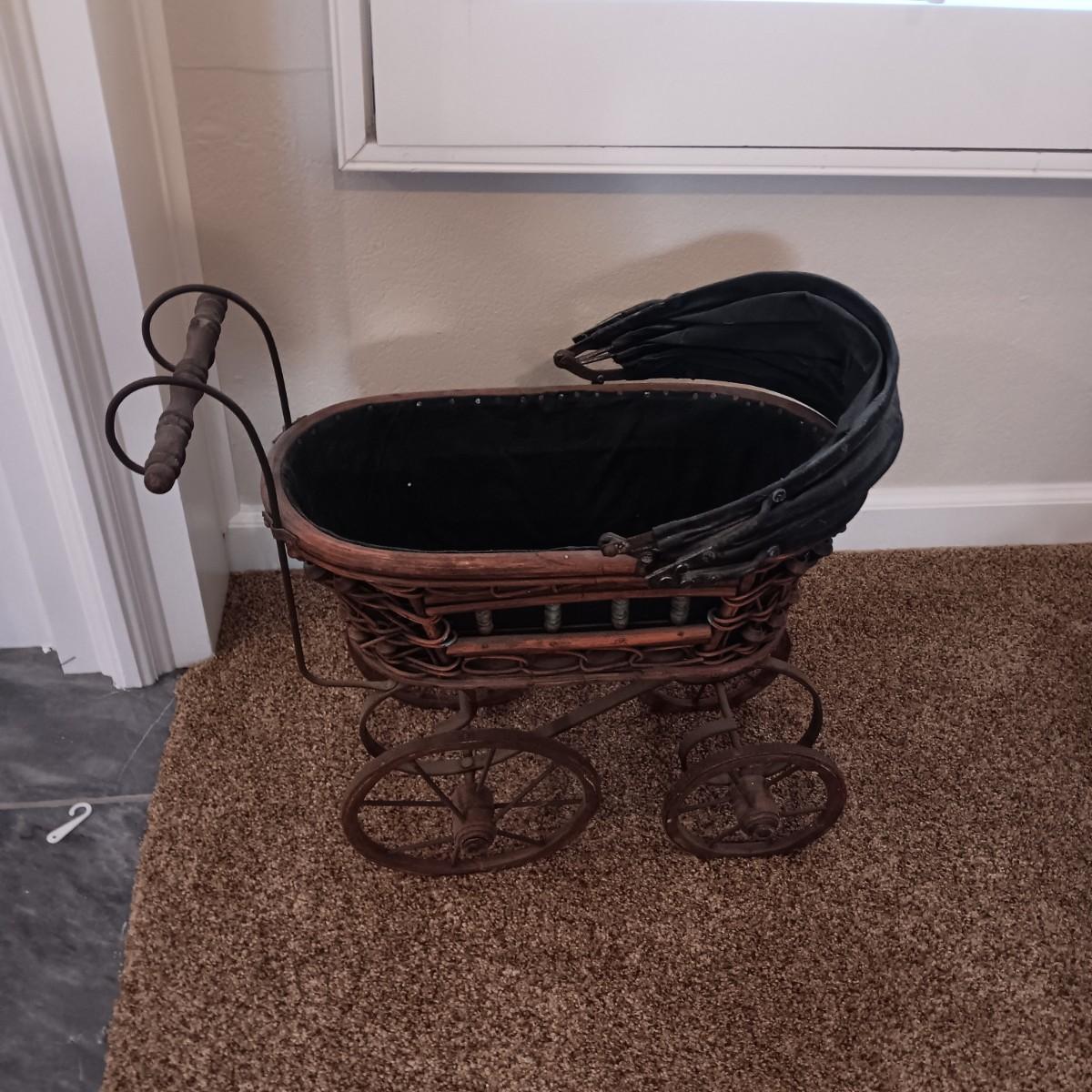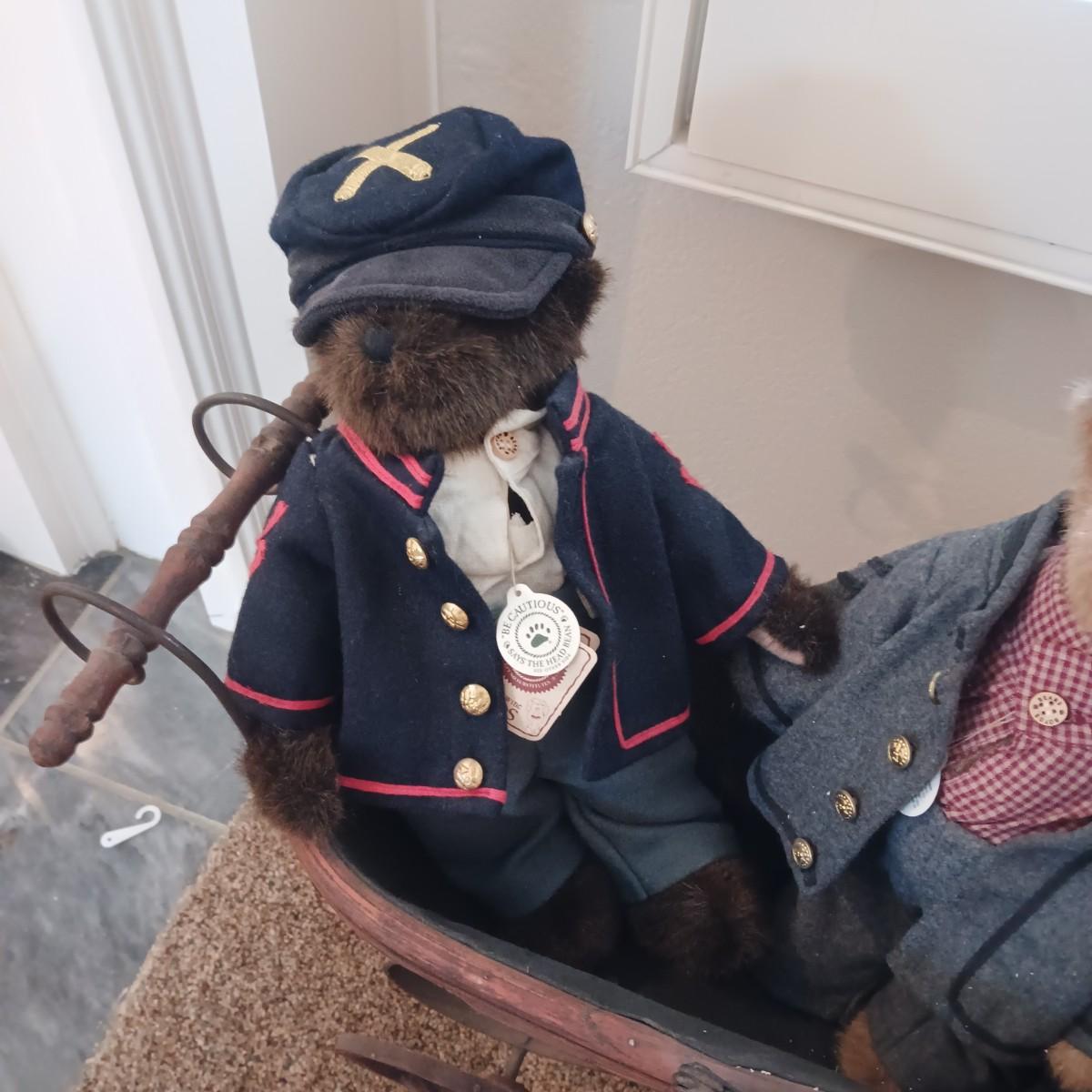 ANTIQUE REPLICA STROLLER WITH 2 BOYDS BEARS
