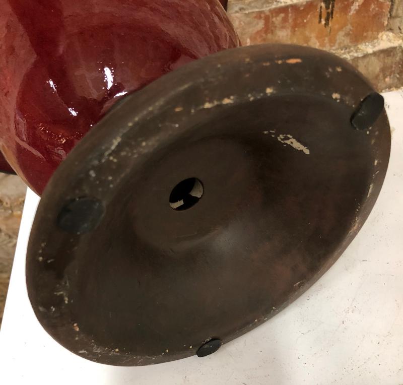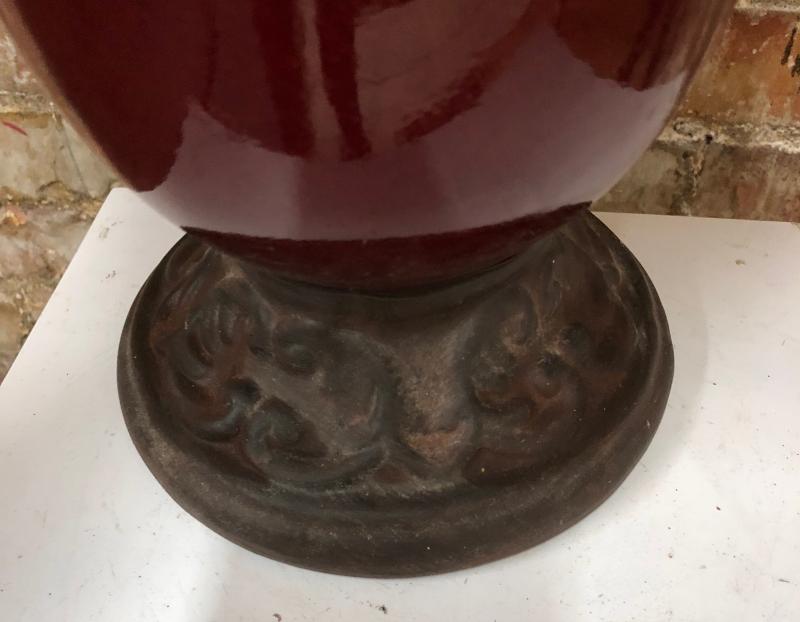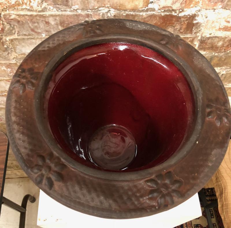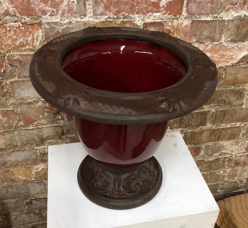 With a deep red glaze and a patterned collar here in very nice condition here is an antique reproduction of a ceramic urn...10" high...Indoor/outdoor...