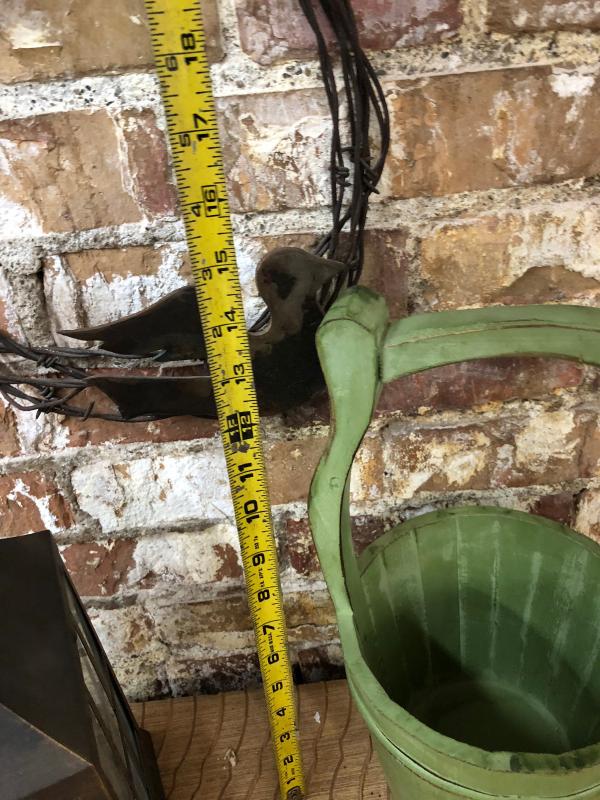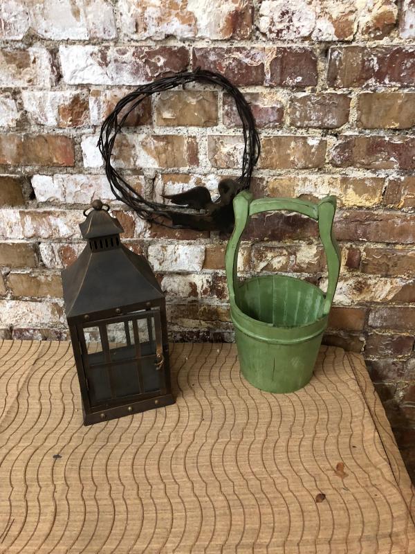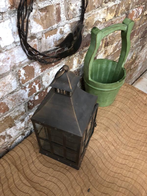 antique reproduction decor lot Lantern Bucket & Metal Wreath