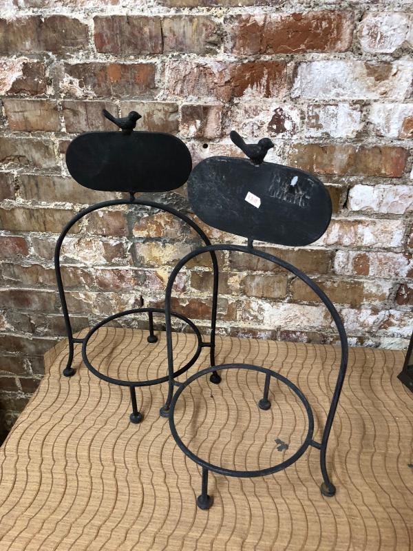 Here are a pair of 18" wrought iron pie or plate stands in very good condition...antique reproduction...