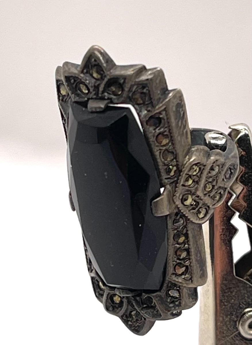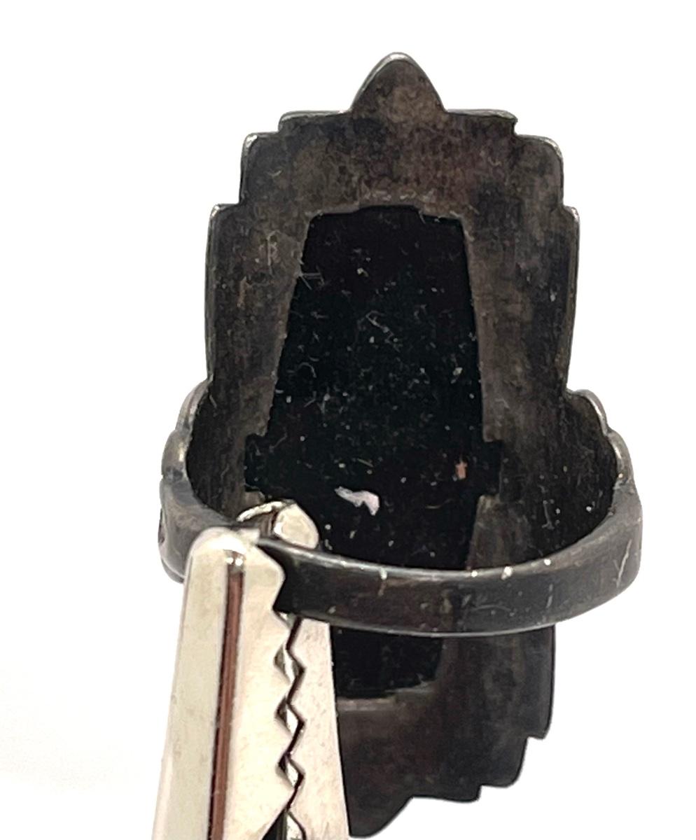 In fair condition, stone is a little loose. Size 4. Ring face is approx 1" x 0.5"