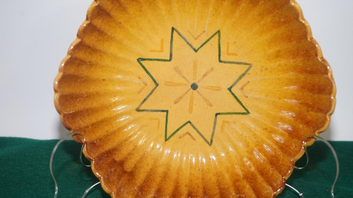 ANTIQUE ROCK POTTERY 9 1/2" BOWL 1890-1900 HAND DECORATED W/STAR