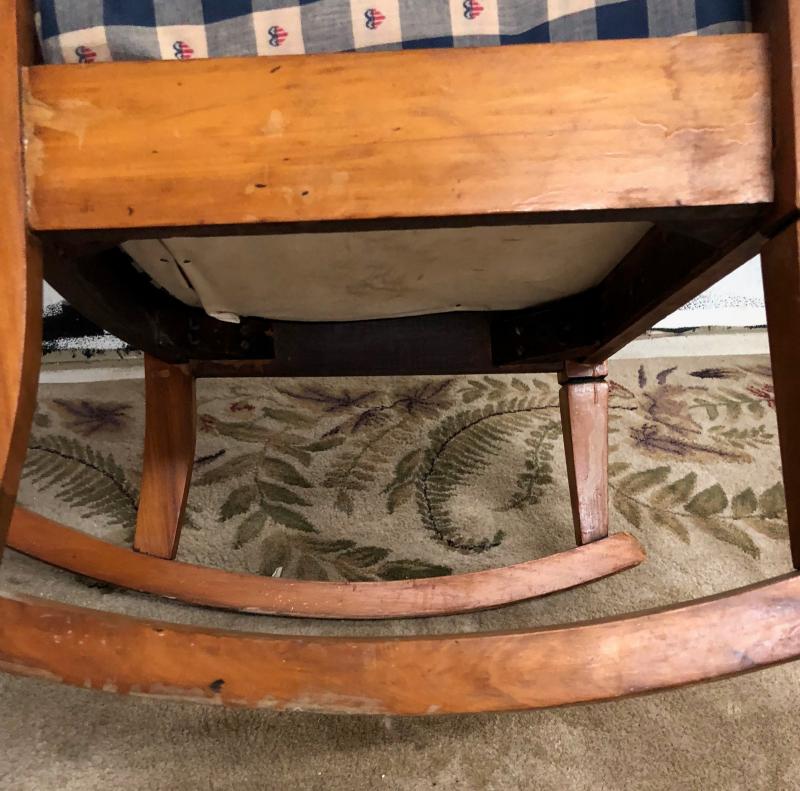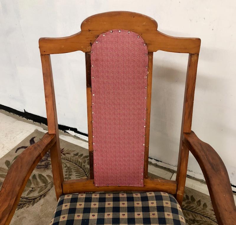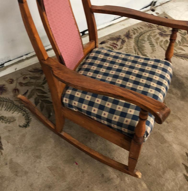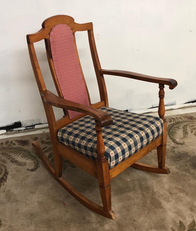 Here is a fabric covered antique rocking chair in good condition...Some normal use...