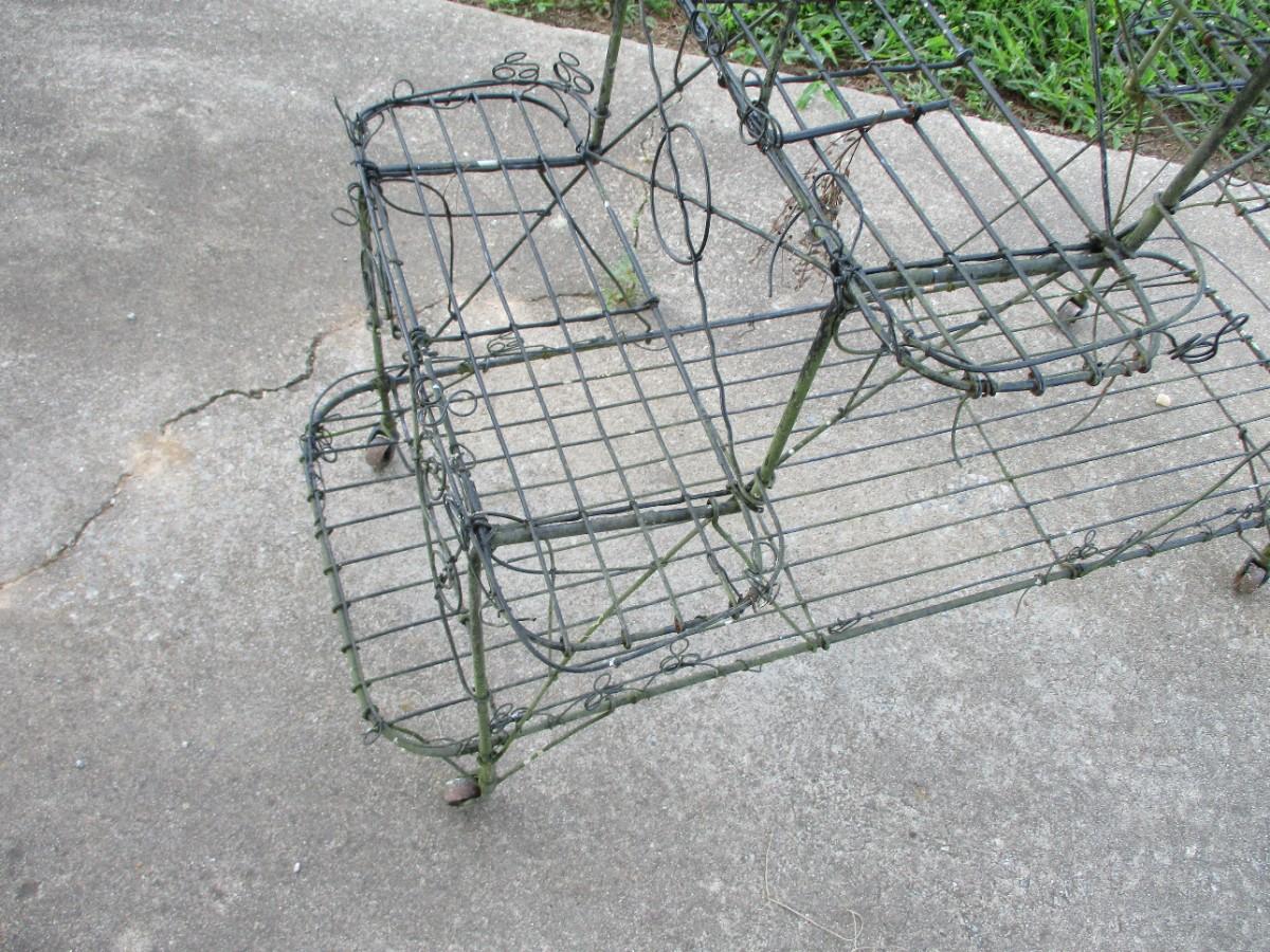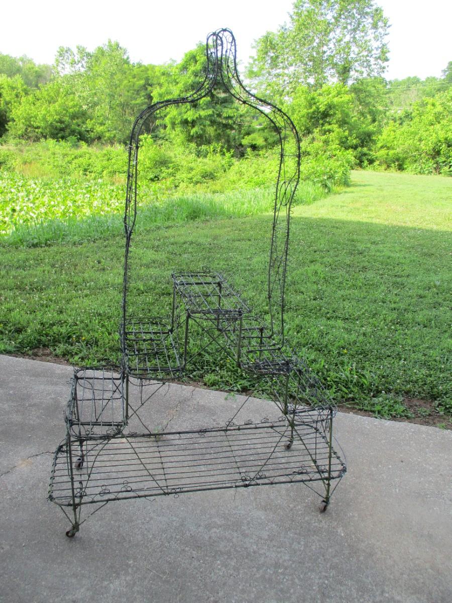 Rare Antique Deco Metal Wire Rolling Plant Stand 76" Tall & 52" Long