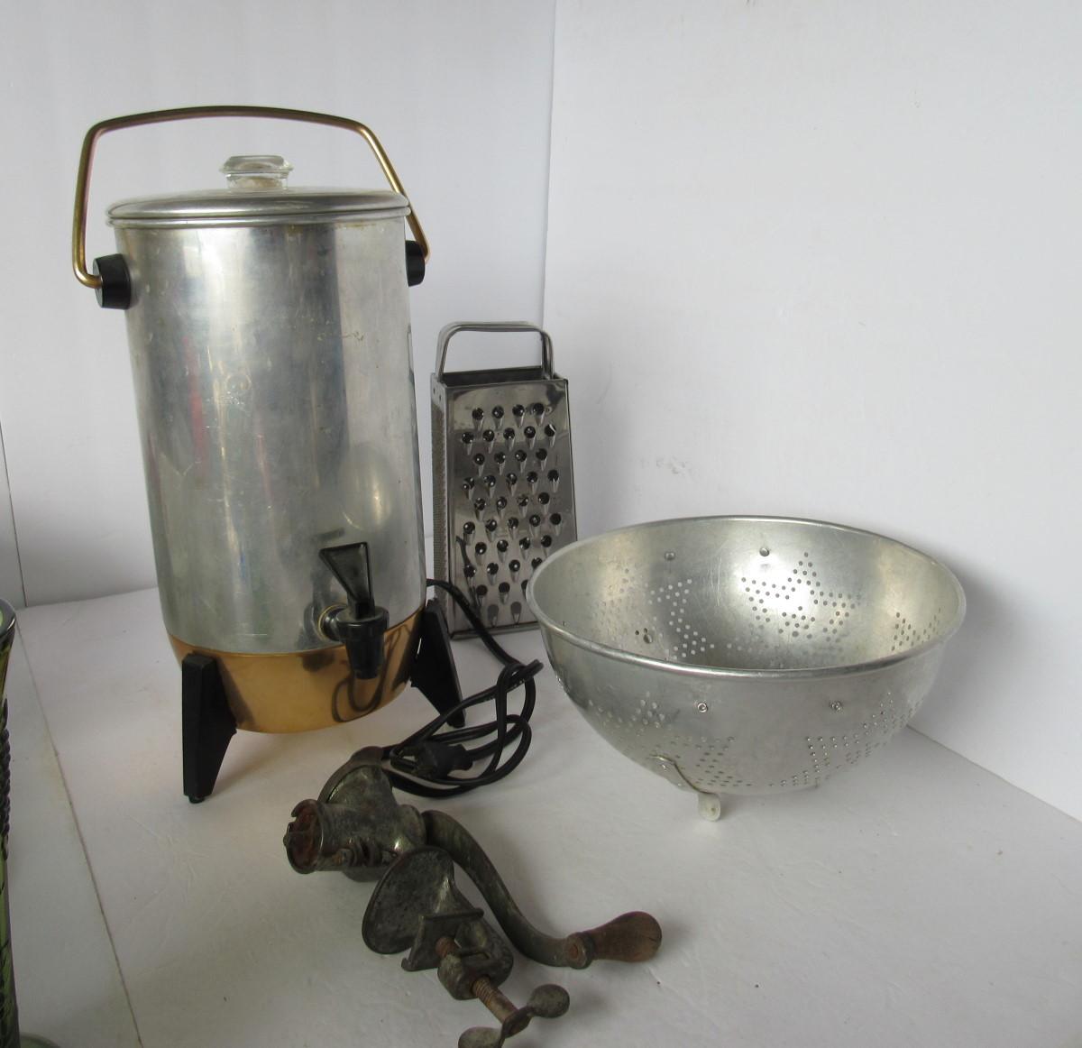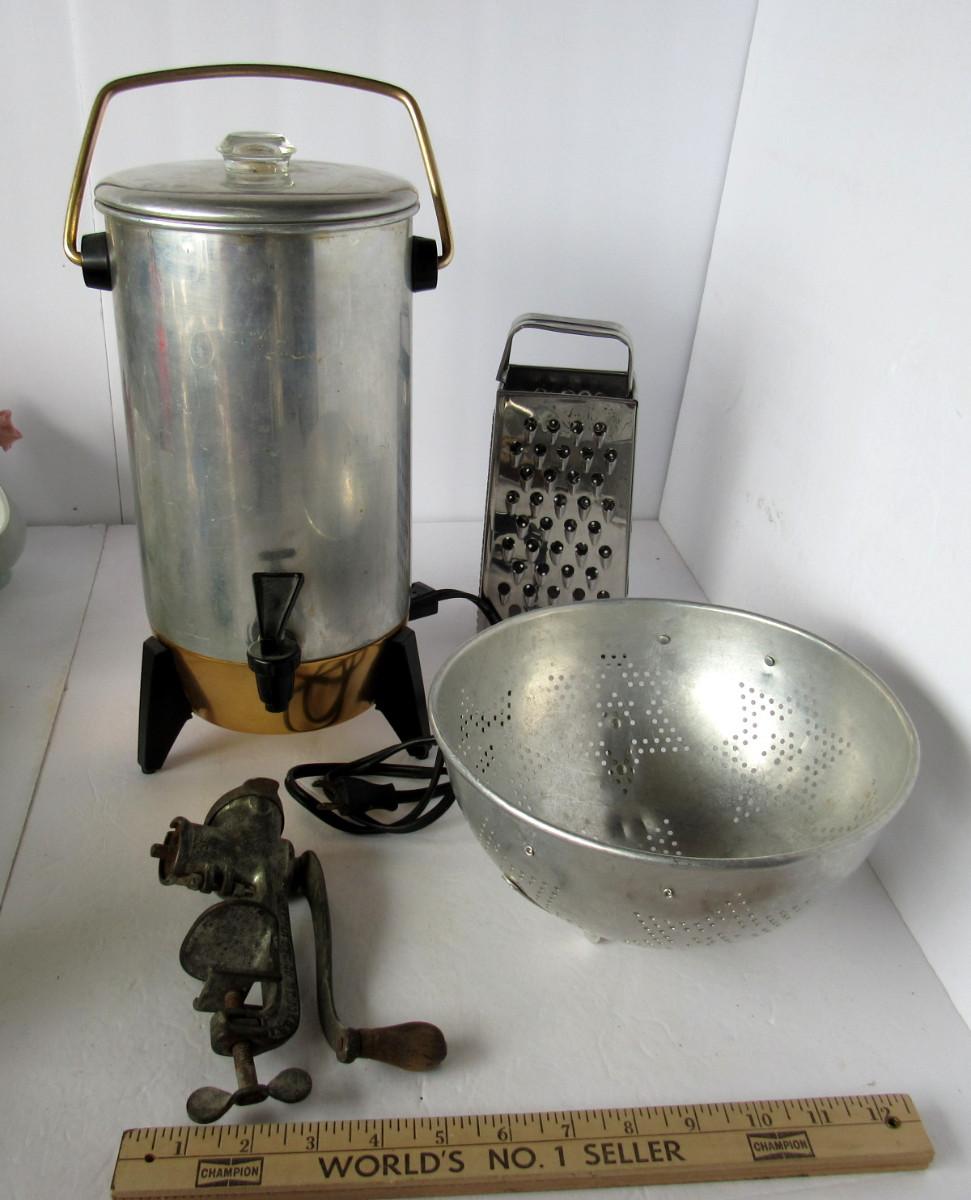 Antique Rollman Mfg Salesman Sample Meat Grinder, 22 Cup Mirro Coffee Maker, More