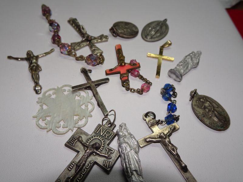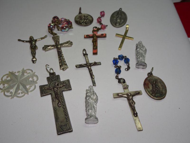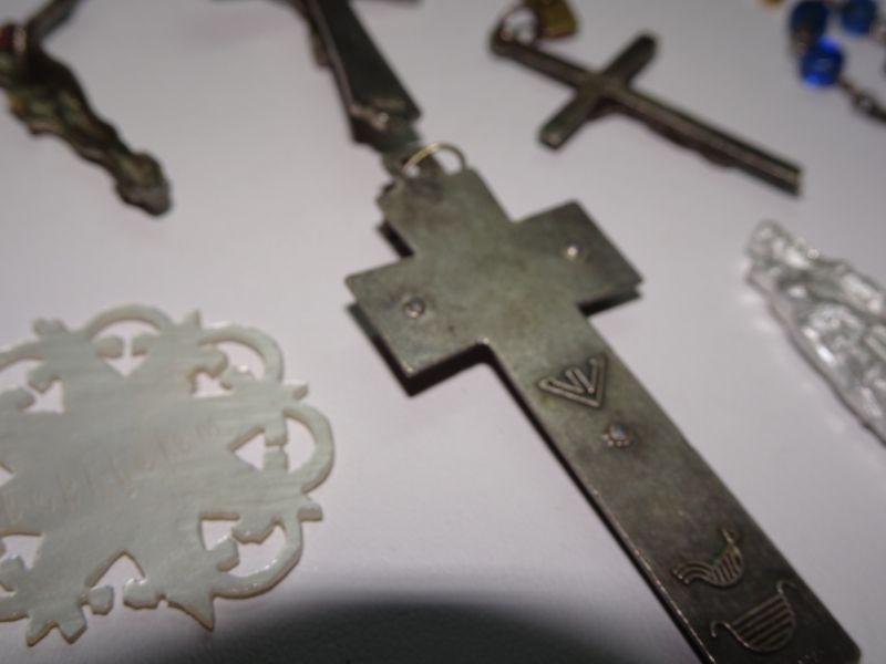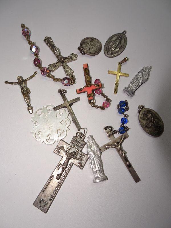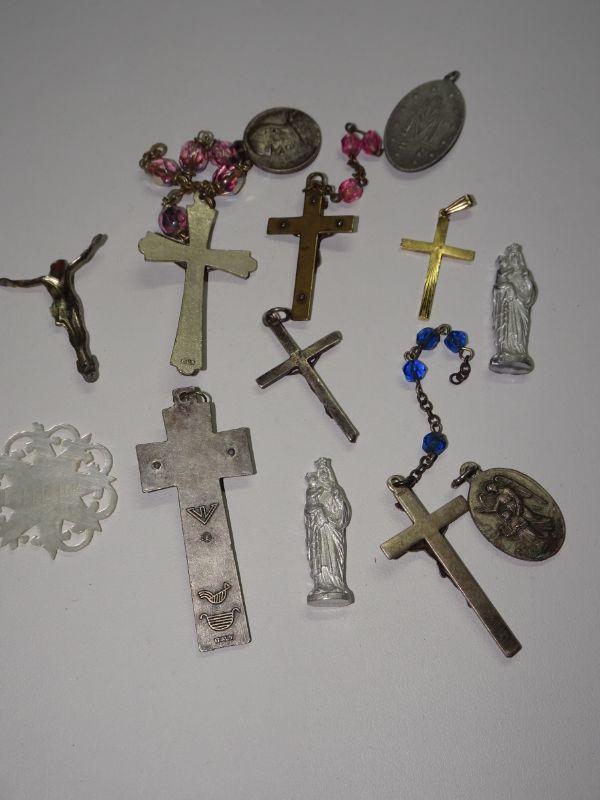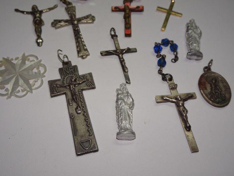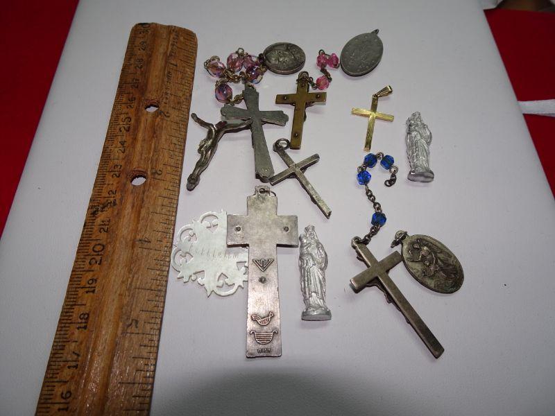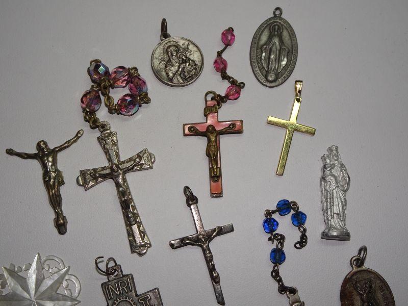 Antique Rosary Crosses, Charms, Prayer Relics, Medals, Mother of Pearl Bethlehem Star