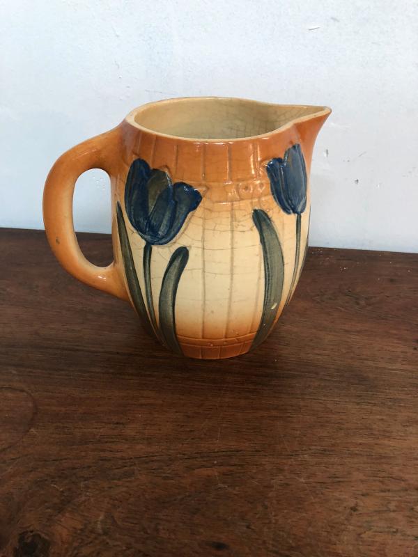 Antique Roseville Pottery tulip pitcher form the 1920's measures 10" tall.