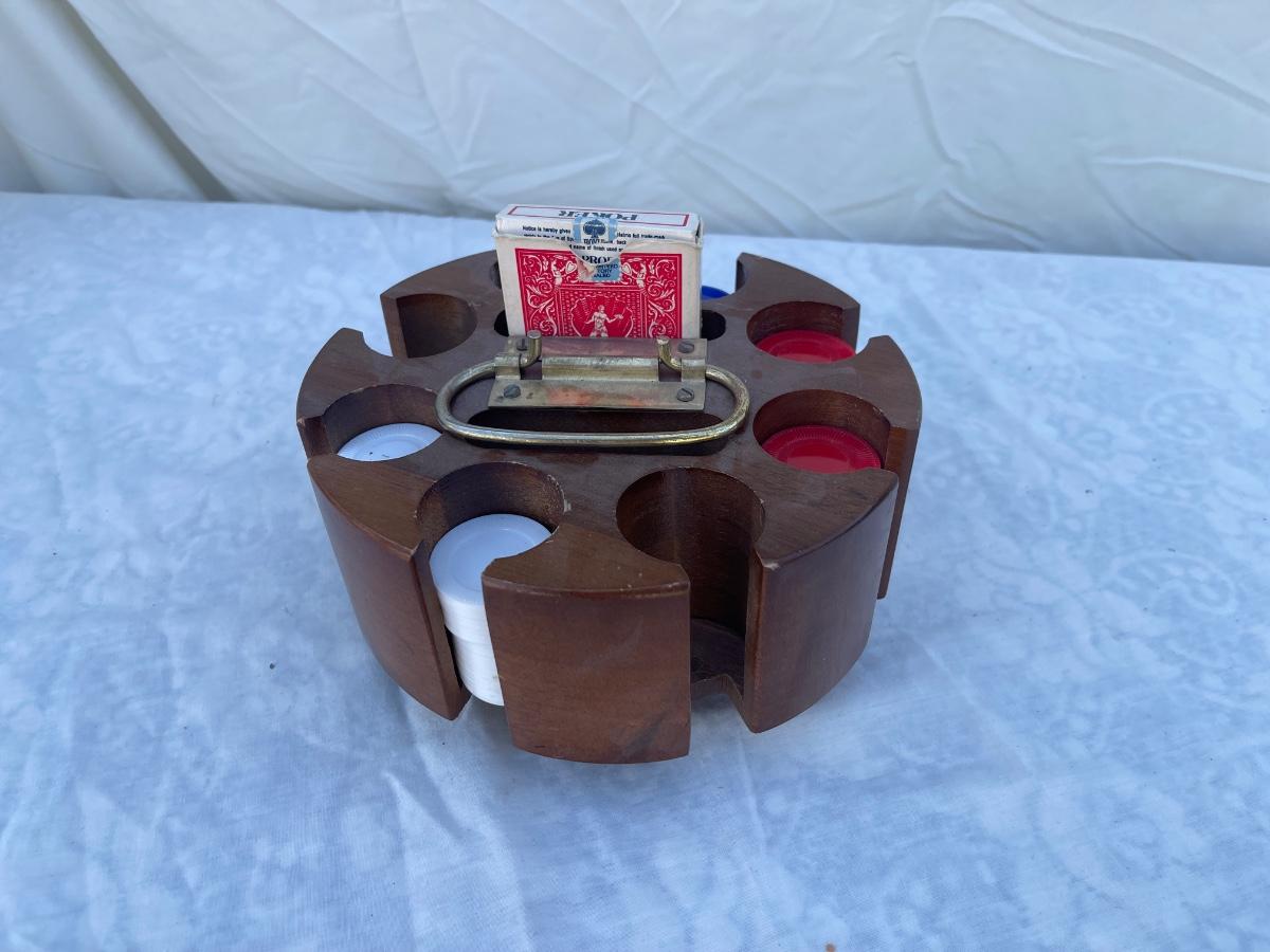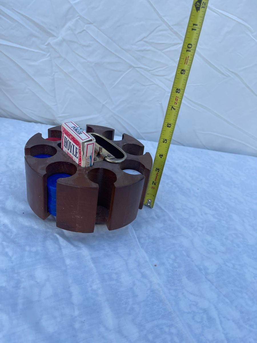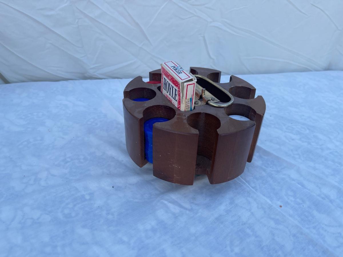 Antique Rotating Poker Chip and Card Holder