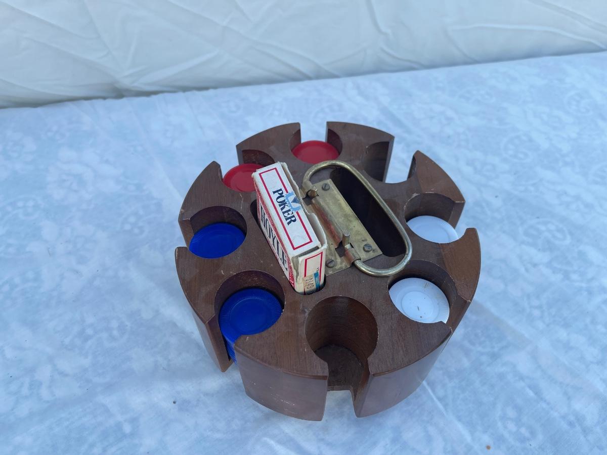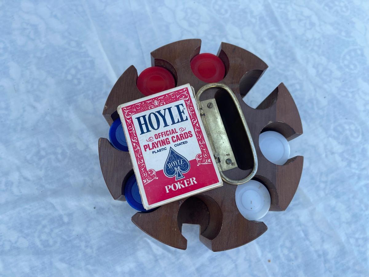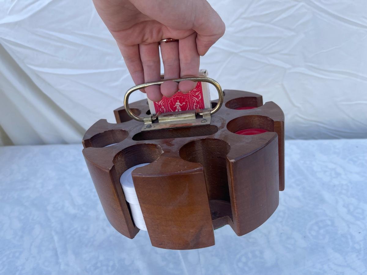 Antique Rotating Poker Chip and Card Holder