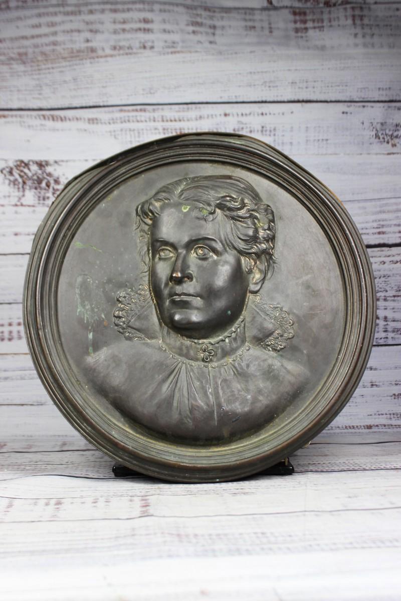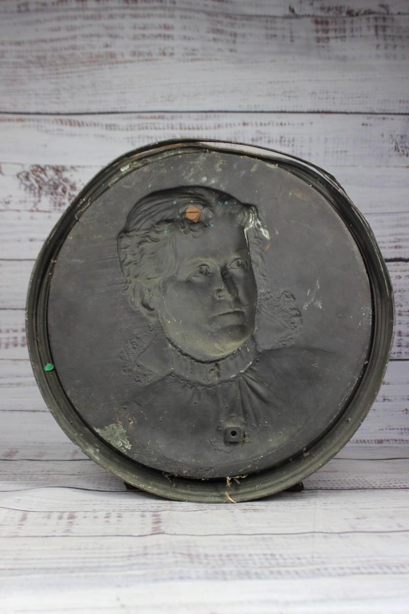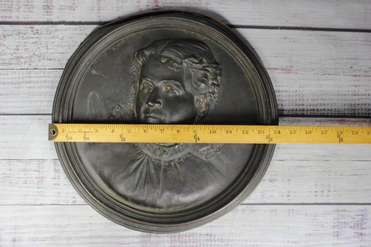 Antique Round Embossed Bronze Metal Portrait of a Victorian Woman