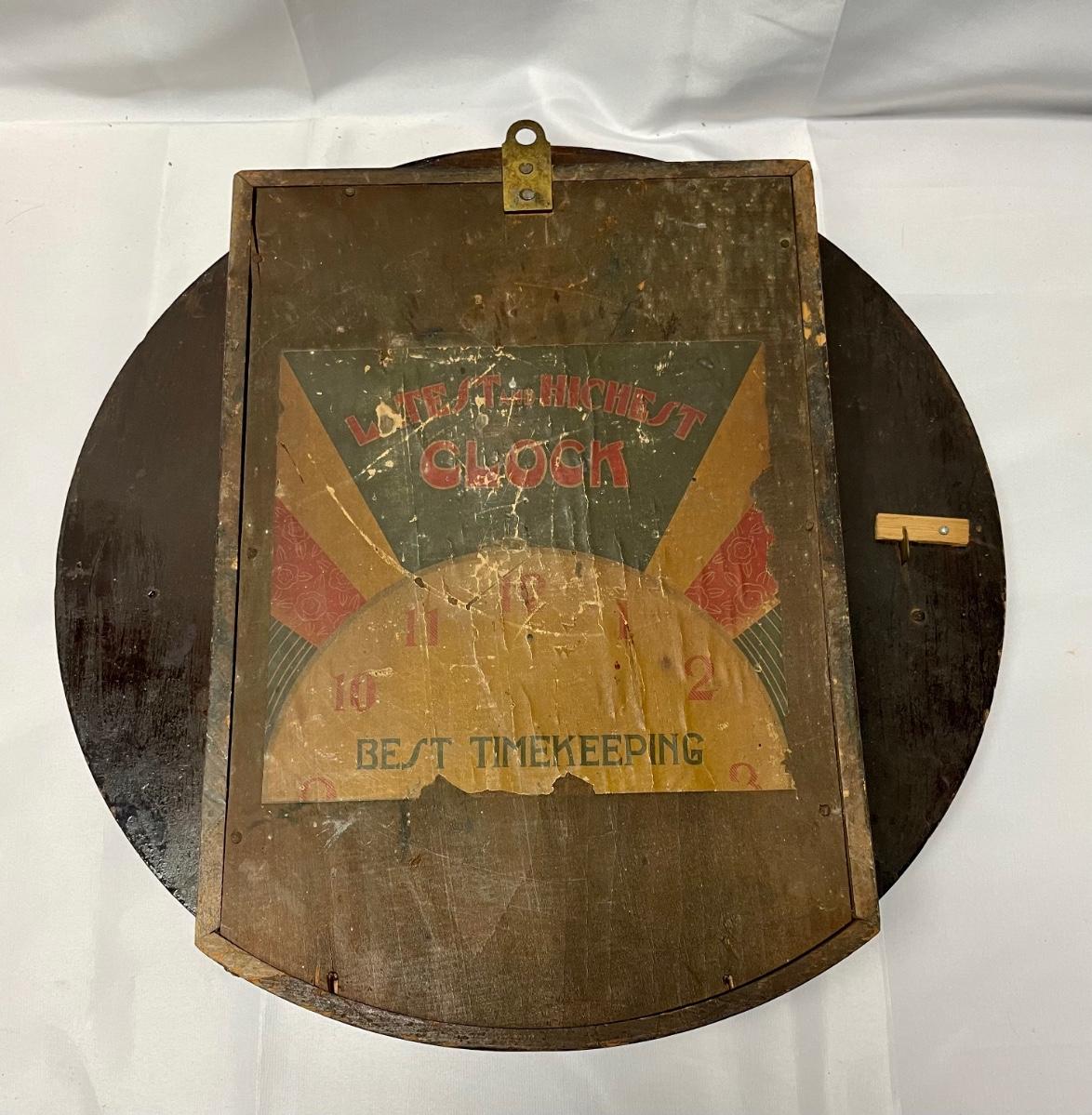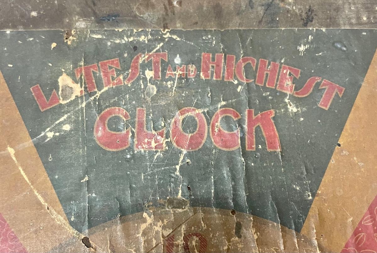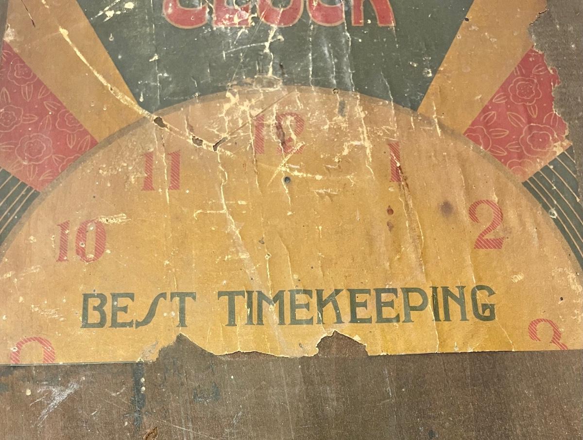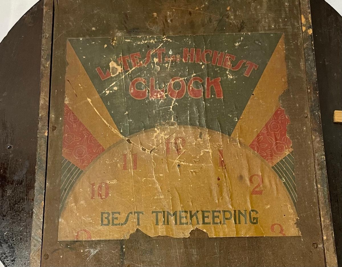 This clock was found in a storefront rented by my parents in the '70s. Unsure of the maker. My research came up with possible Seikosha (?), but couldn't find one just like it. Clock with wood body and mechanism case on the back. Hinged glass cover. Brass-colored metal pendulum. Words on the back read “Latest and Highest Best Timekeeping”.