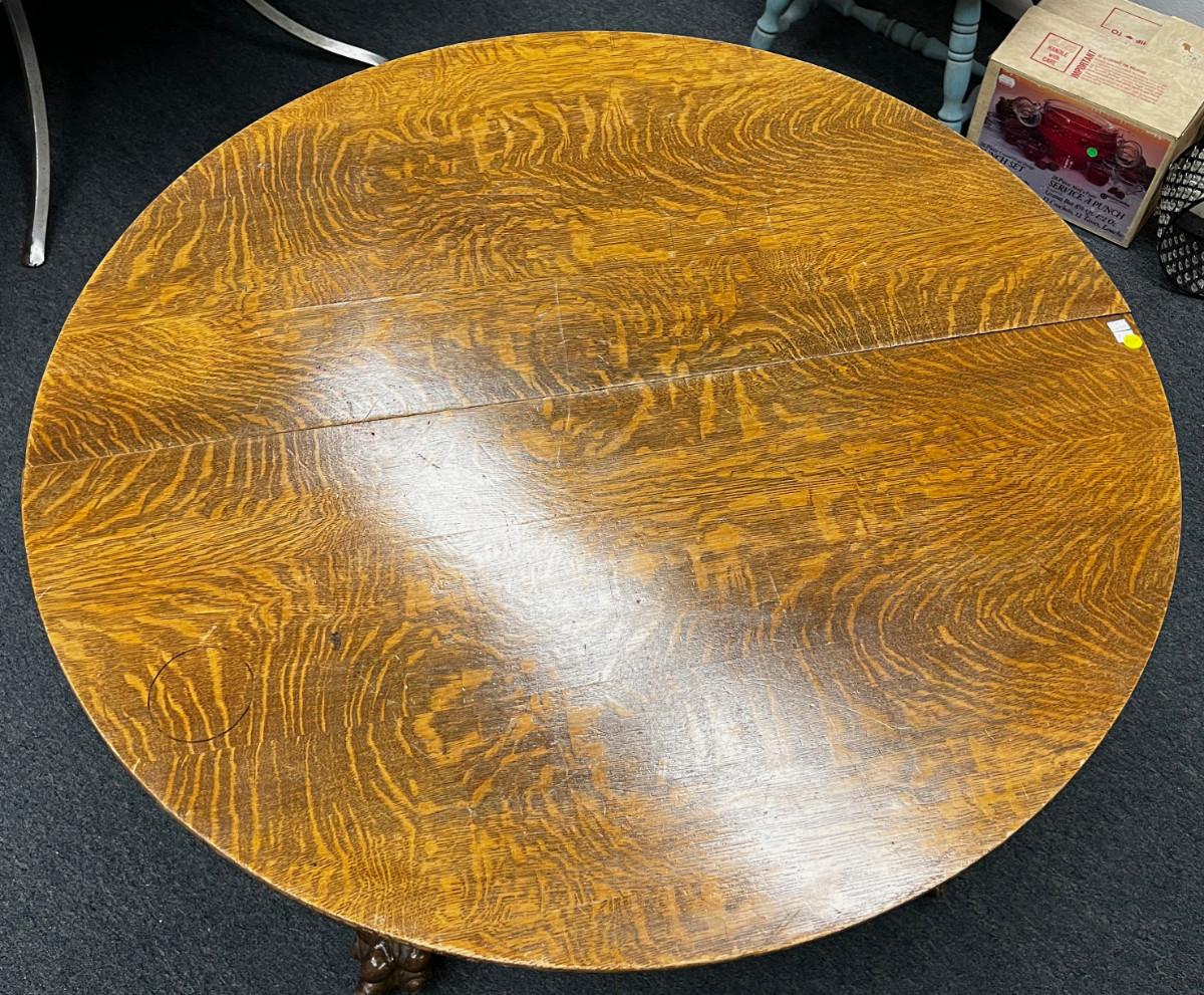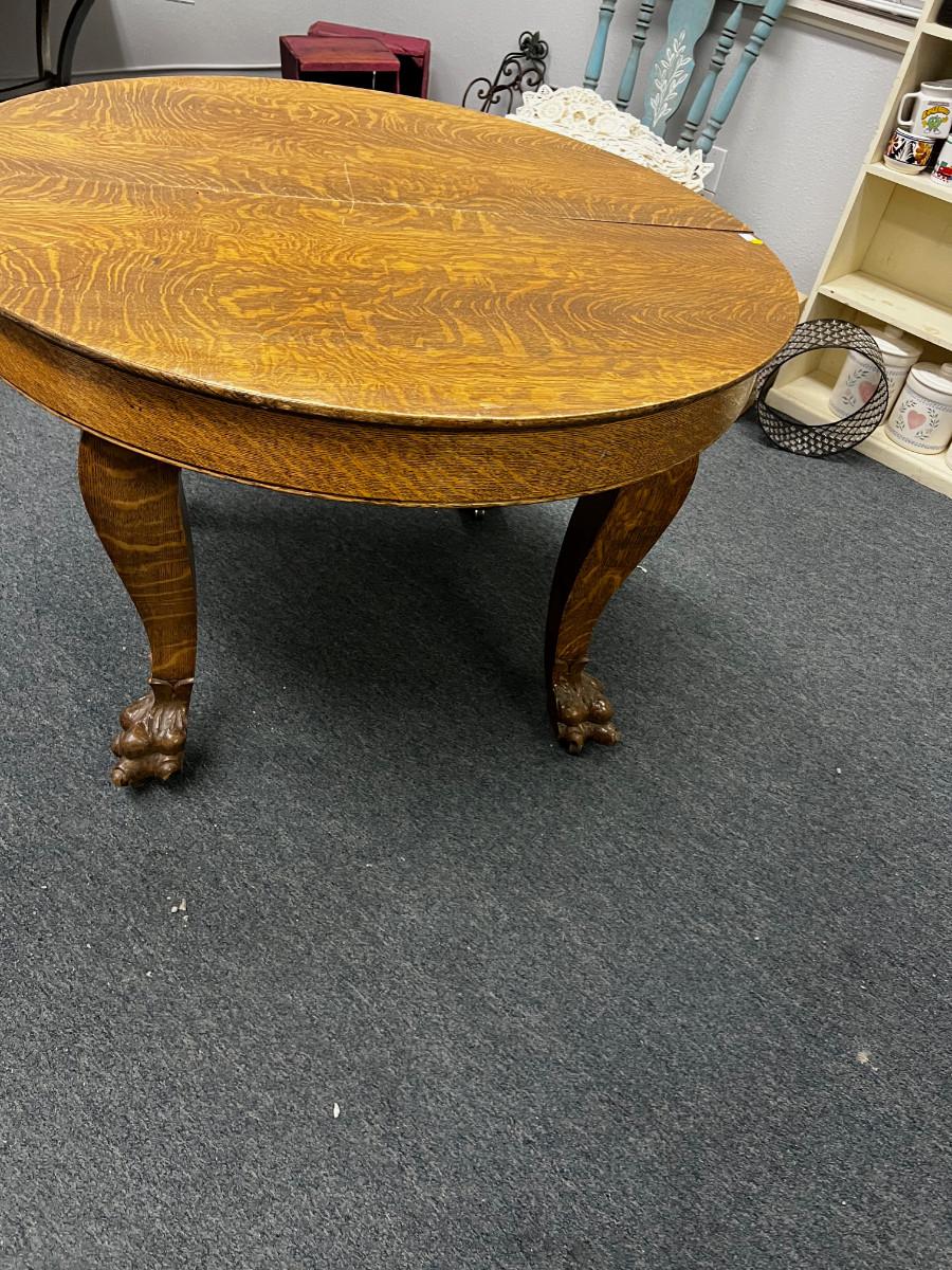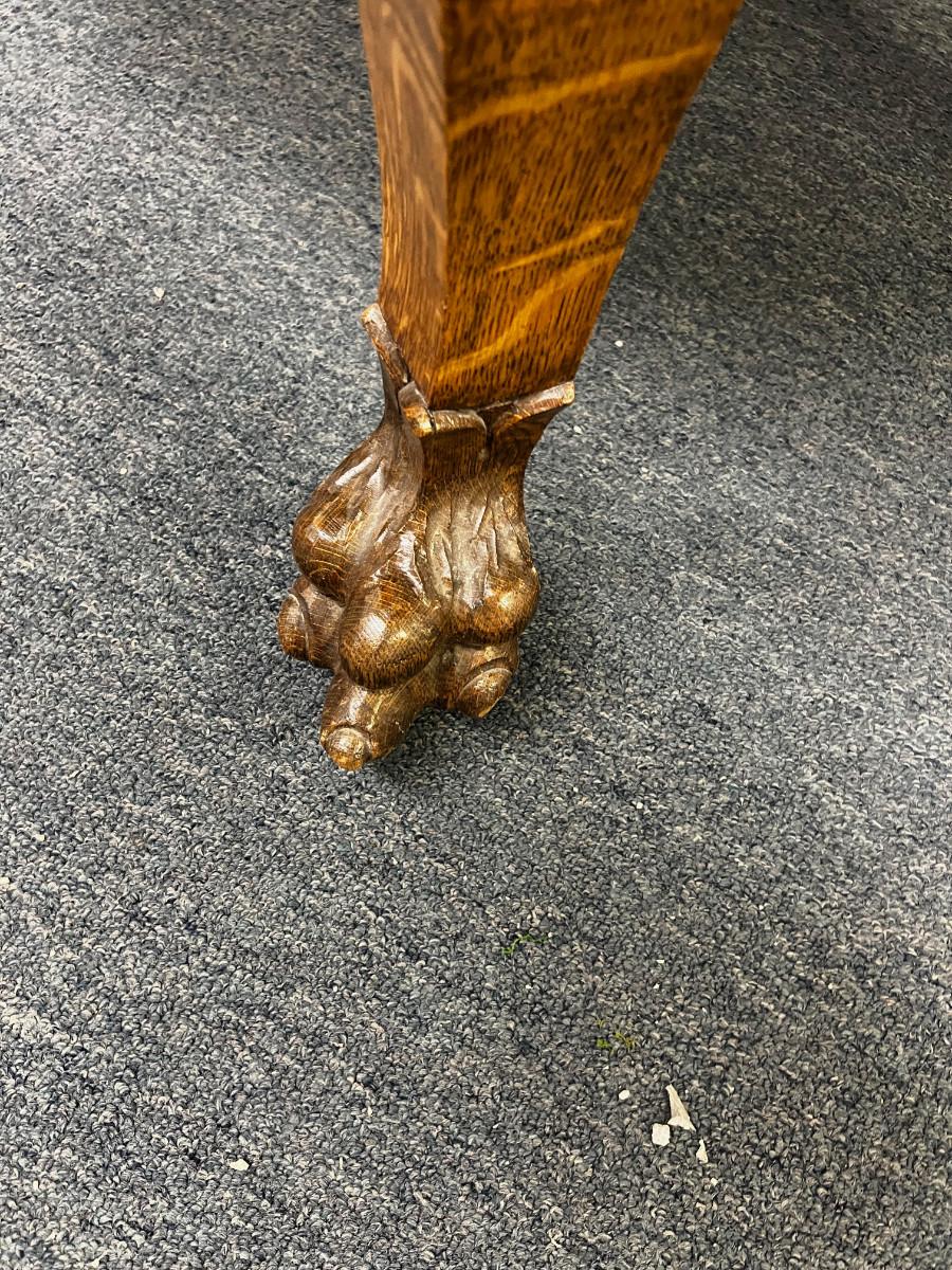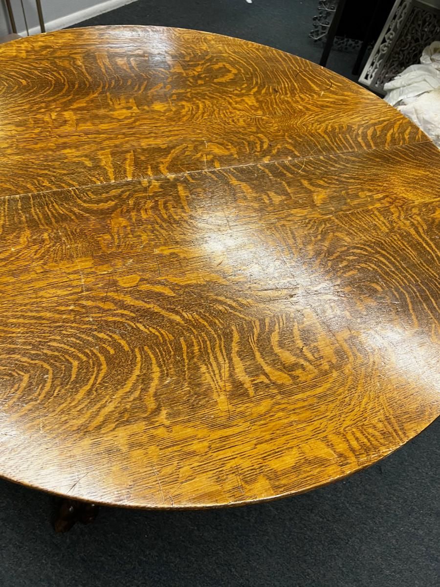 Antique Round Tiger Oak Dining Table with the Griffin Foot