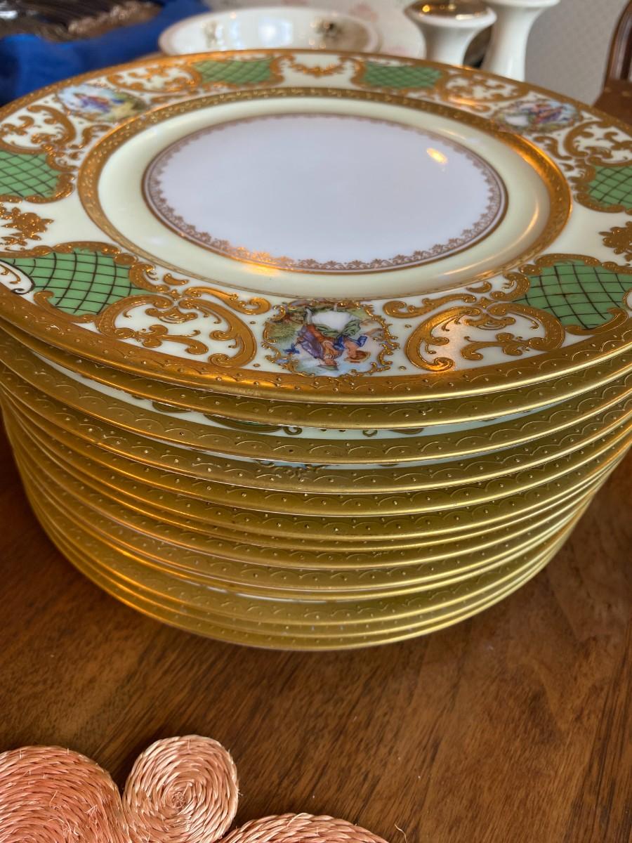 Antique Royal Bavarian Hutschenreuther-Selb (1900) Gold Gilt Plates 13 Pieces