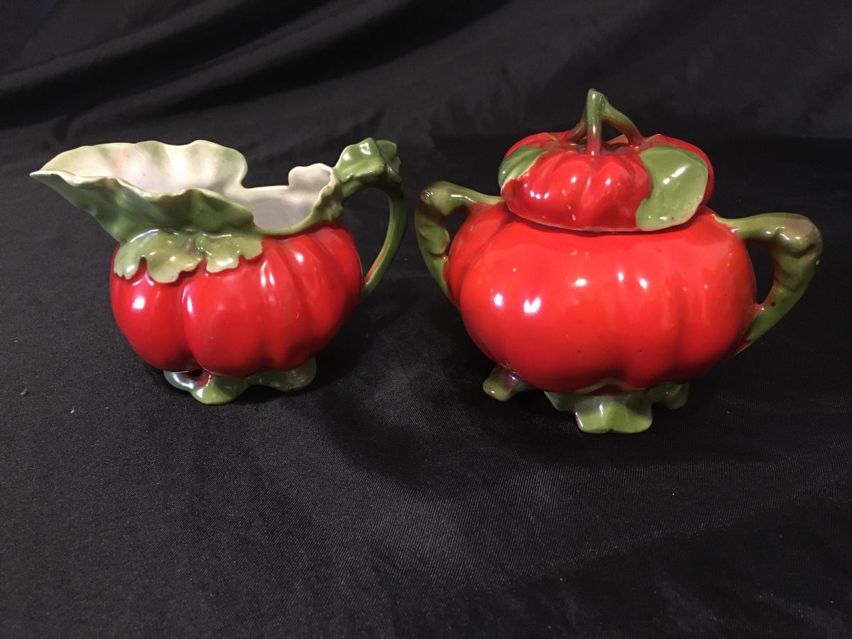 Antique Royal Bayreuth Tomato Creamer and Sugar Bowl w/ Lid