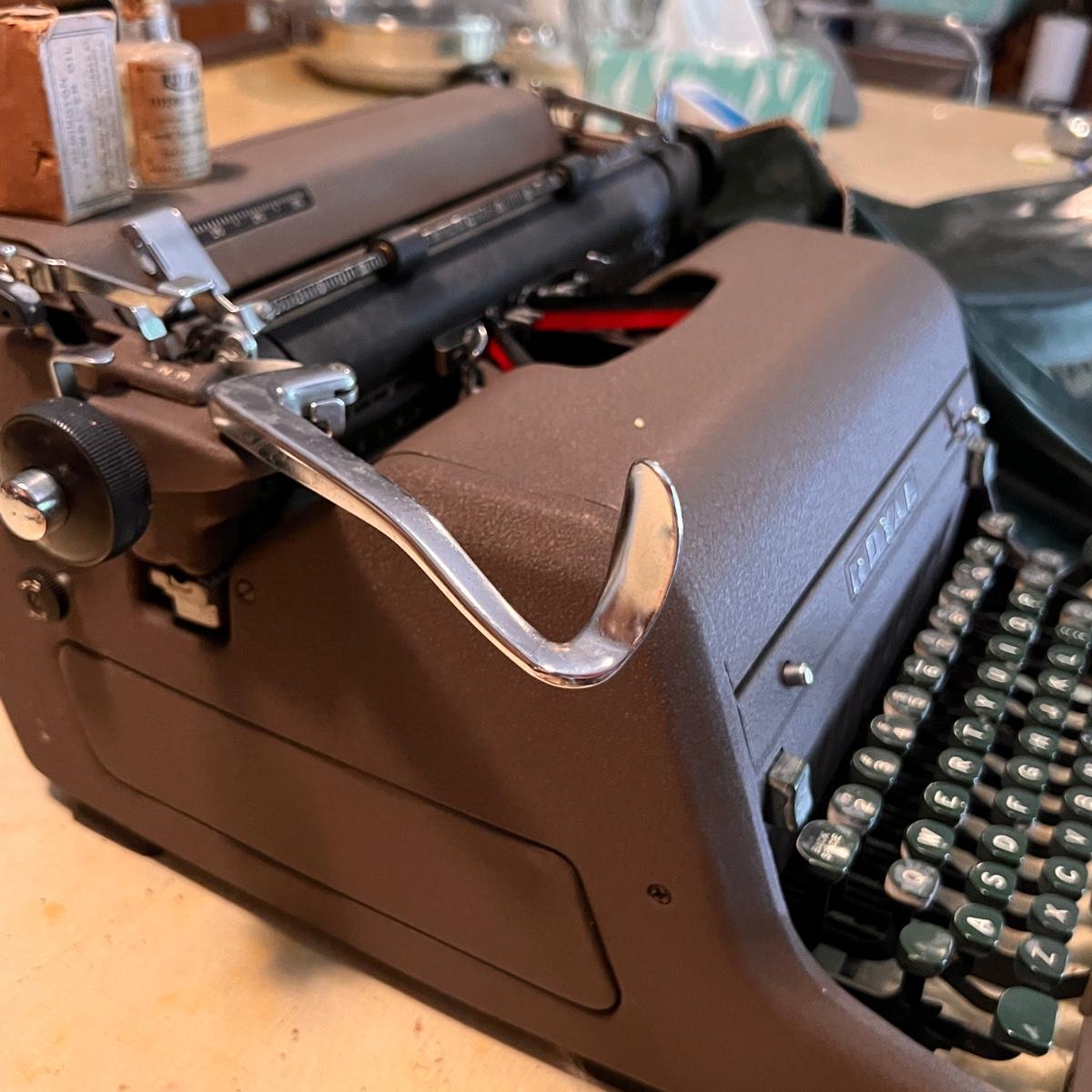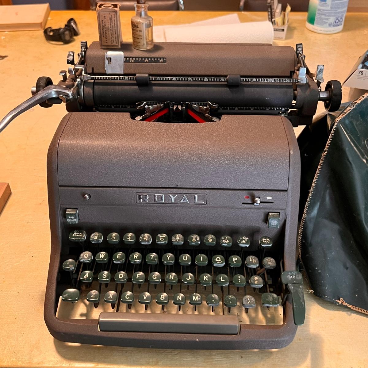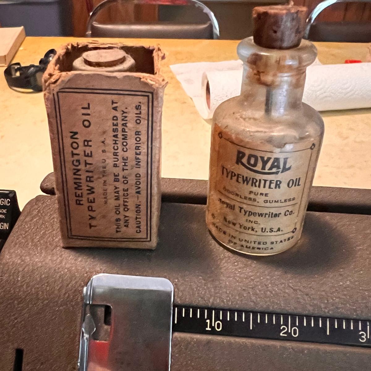 Look in good condition, but is untested. Comes with 2 antique bottle typewriter oil and green cover.