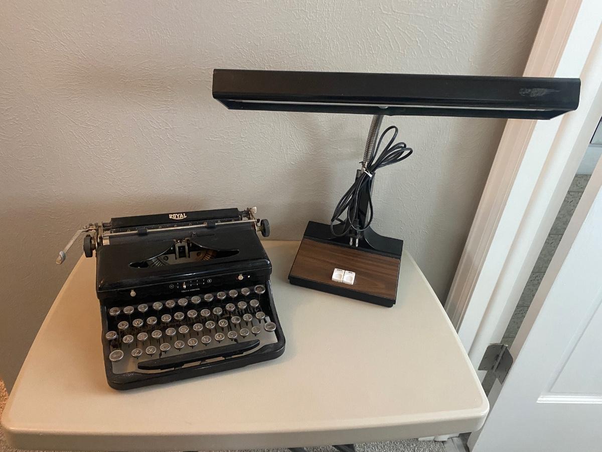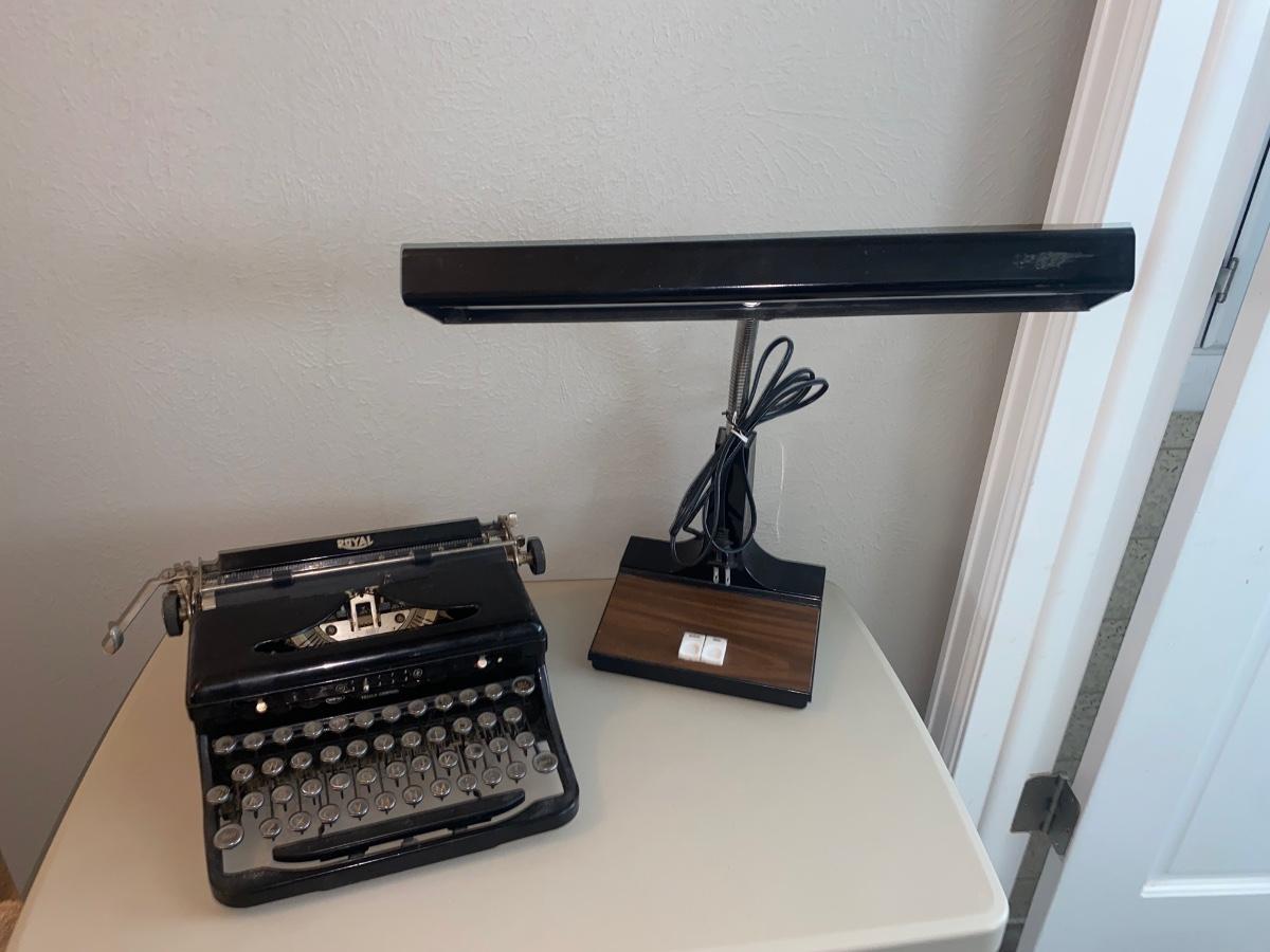 DESK LAMP, 18 INCHES WIDE AND 16 INCHES TALL