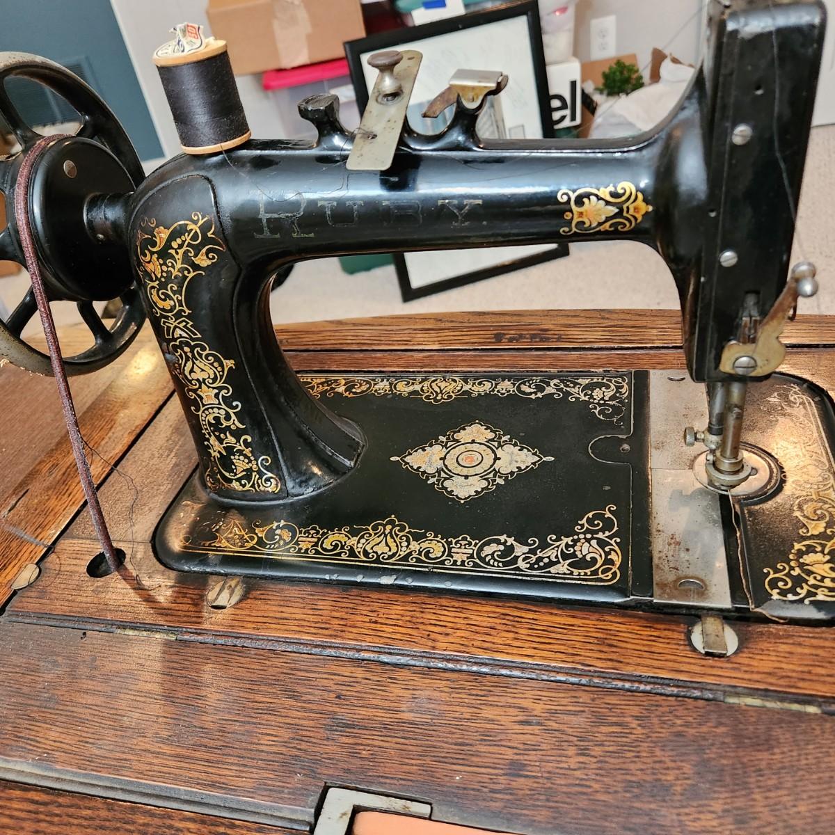 Antique Ruby Treadle Sewing Machine in Beautiful Cabinet