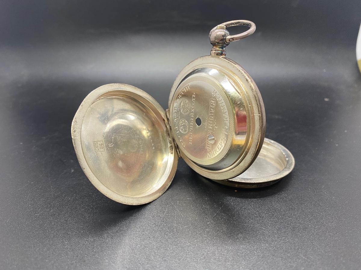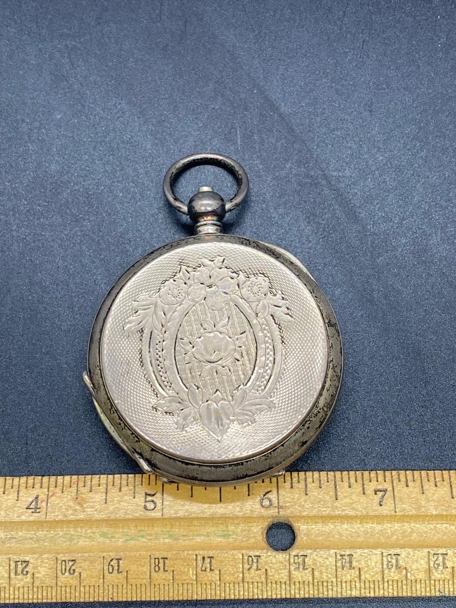 Antique Russian .875 silver hunter pocket watch case. Ornately detailed case pattern. Marked .875 in multiple places. Also has a serial number marked inside it looks like. No time piece included case only. In good aged condition.