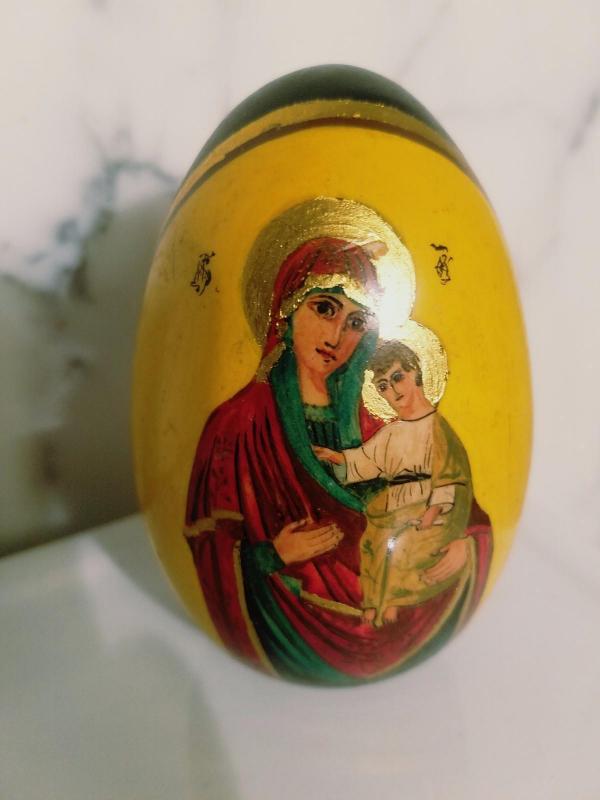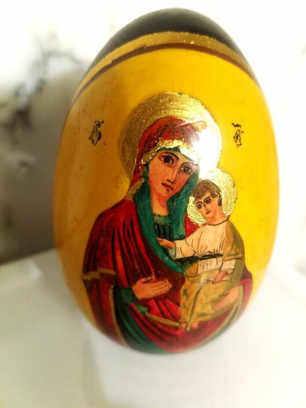 Antique Russian Signed gold hand painted large Egg Madonna & Child