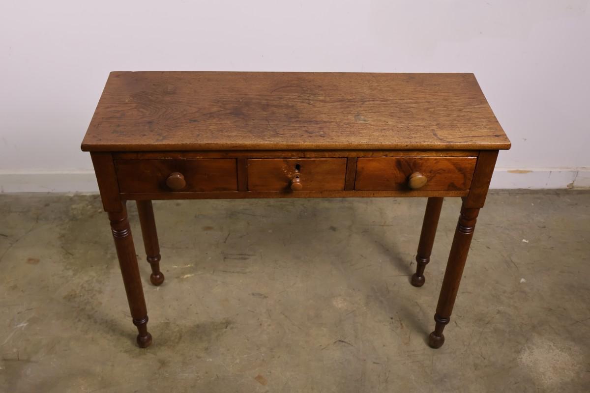 Rustic, antique wood console table. 36" x 12 1/2" deep x 29" high. Definitely shows some wear.