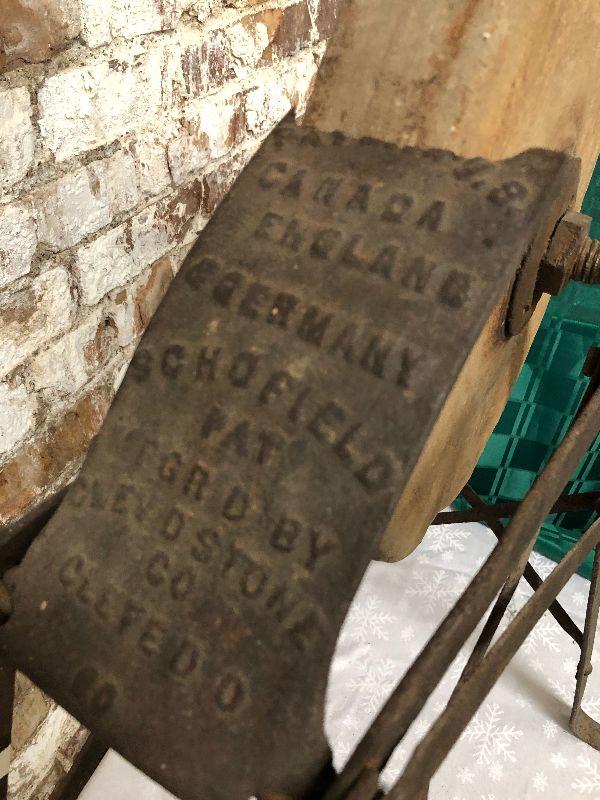 Here is an antique Schofield grinding wheel ...from the Cleveland Stone Company..Pedal Powered...as shown...Great display piece...