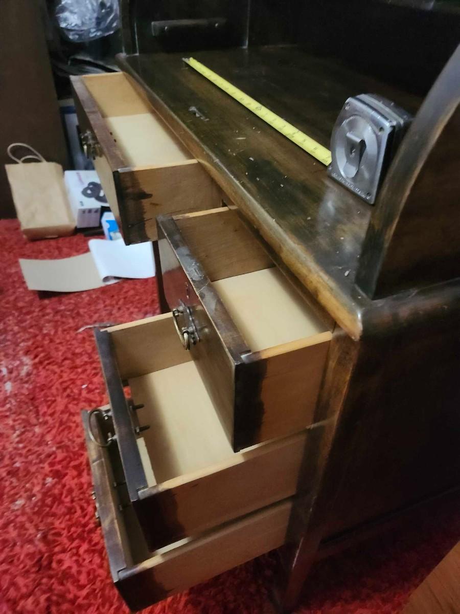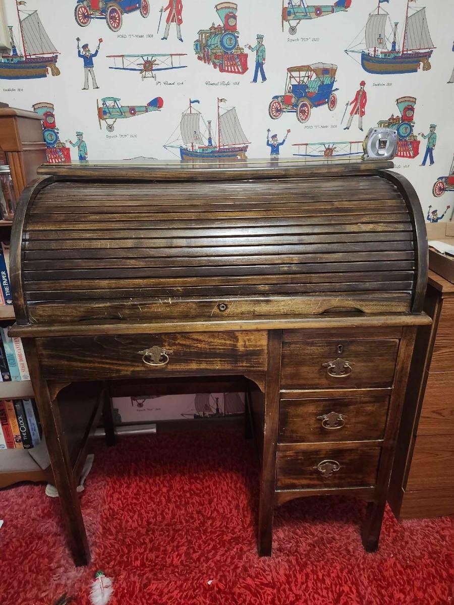 Antique Rustic Wood Child's Student Roll Top Secretary Writing Desk - Kids